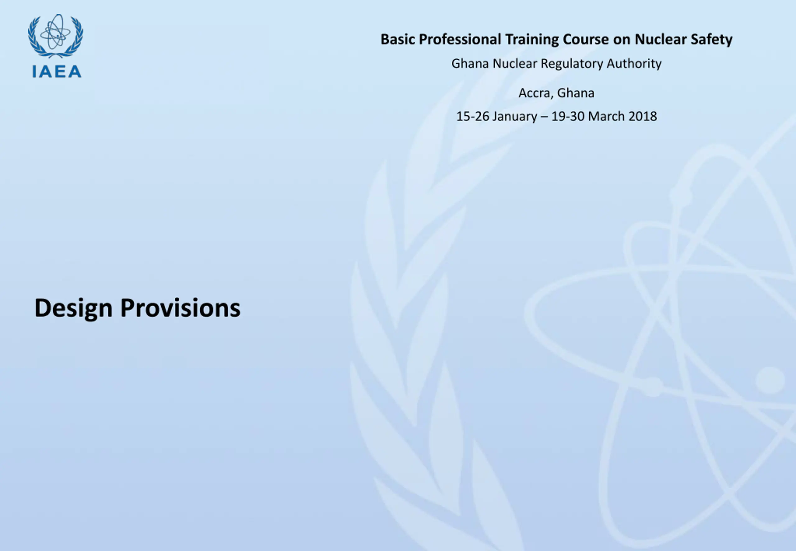 Basic Professional Training Course on Nuclear Safety Ghana Nuclear Regulatory Authority Accra, Ghana 15-26 January 19-30 March 2018 Design Provisions