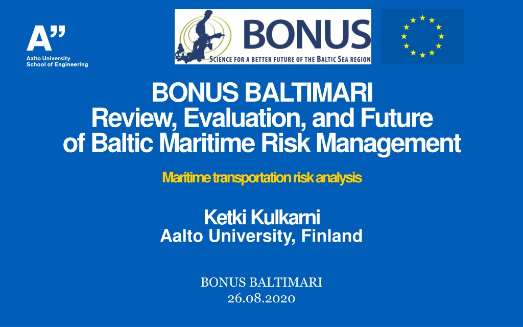 BONUS BALTIMARI Review, Evaluation, and Future of Baltic Maritime Risk Management Maritime transportation risk analysis Ketki Kulkarni Aalto University, Finland BONUS BALTIMARI 26.08.2020