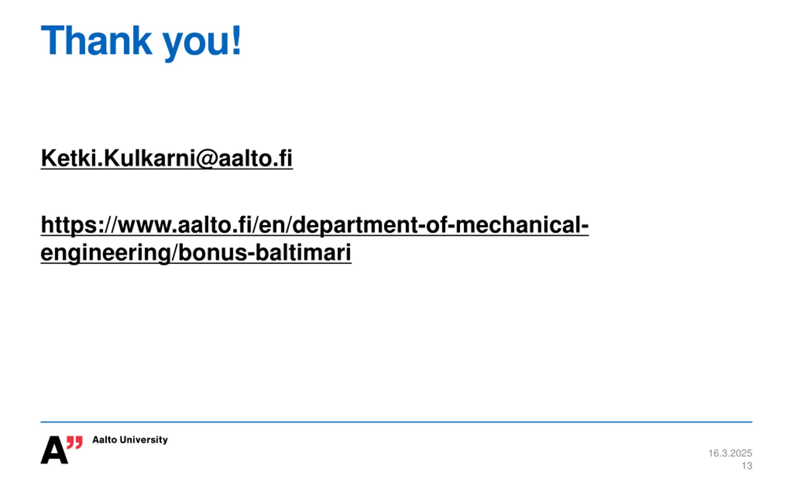 Thank you! Ketki.Kulkarni@aalto.fi https://www.aalto.fi/en/department-of-mechanical- engineering/bonus-baltimari 16.3.2025 13
