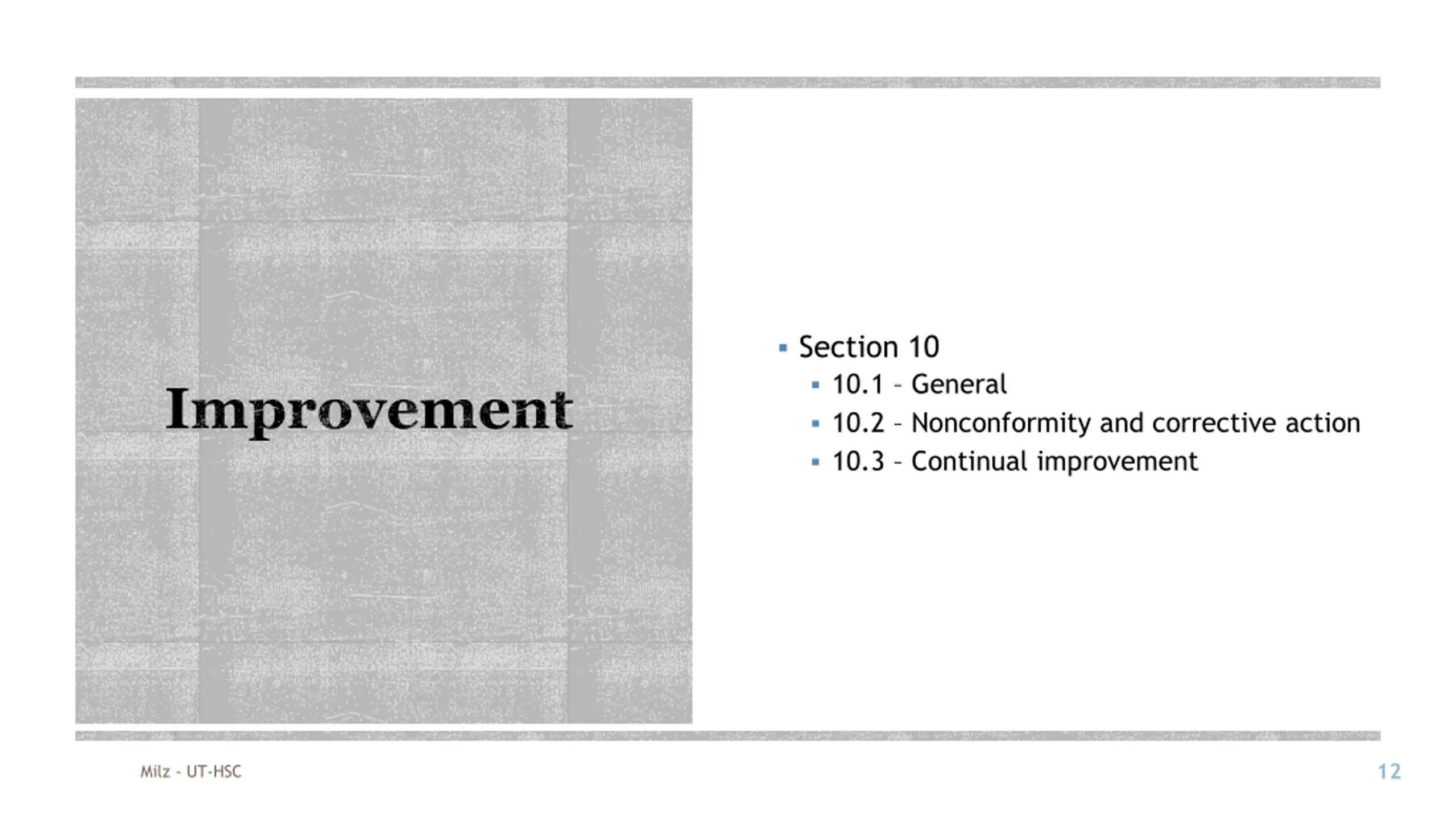 Section 10 10.1 General 10.2 Nonconformity and corrective action 10.3 Continual improvement Improvement 12 Milz - UT-HSC