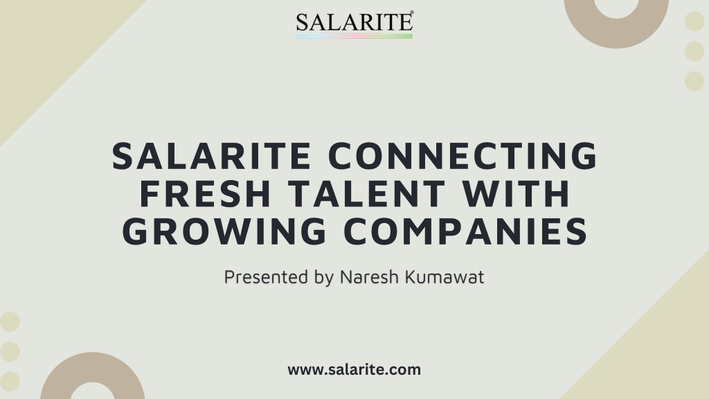 SALARITE CONNECTING FRESH TALENT WITH GROWING COMPANIES www.salarite.com