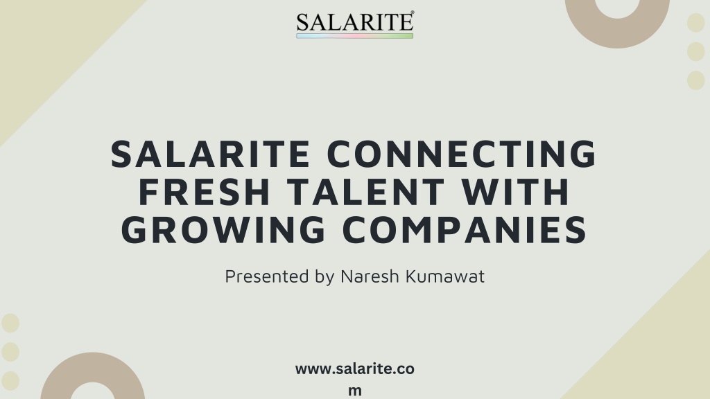 SALARITE CONNECTING FRESH TALENT WITH GROWING COMPANIES Presented by Naresh Kumawat www.salarite.co m