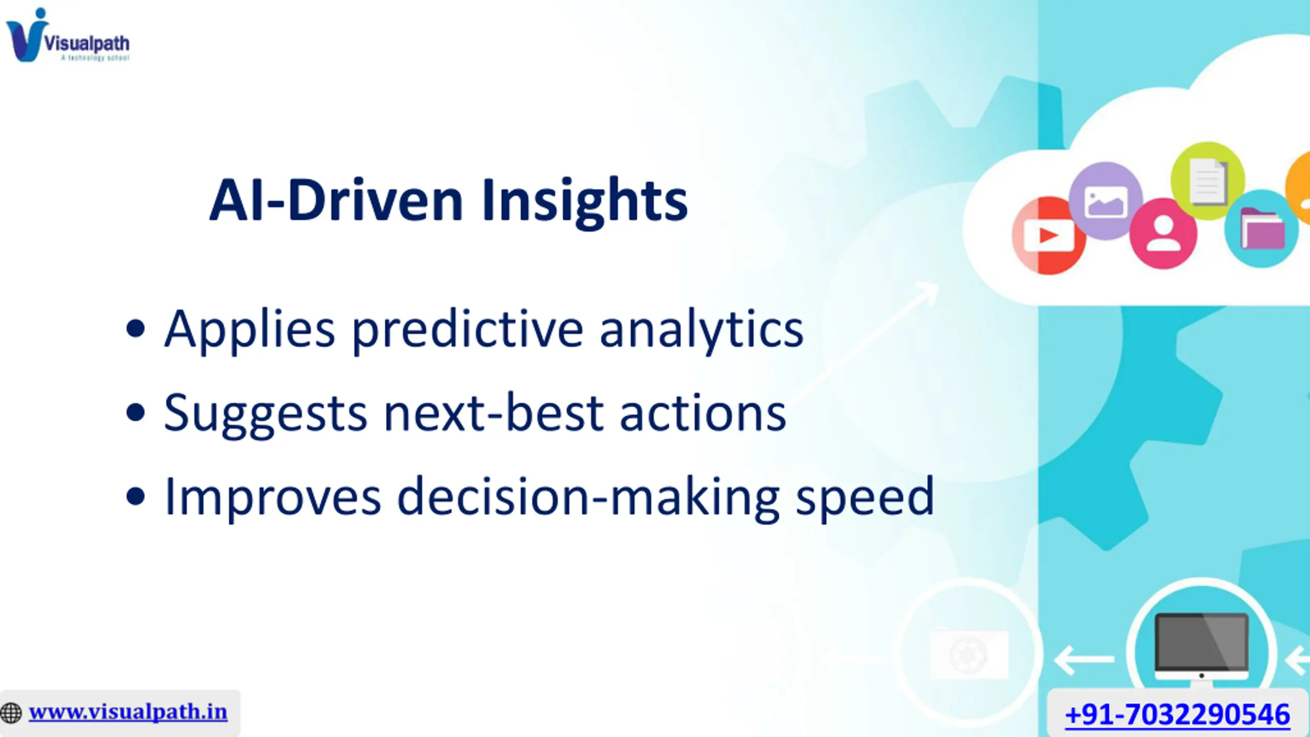 AI-Driven Insights Applies predictive analytics Suggests next-best actions Improves decision-making speed +91-7032290546