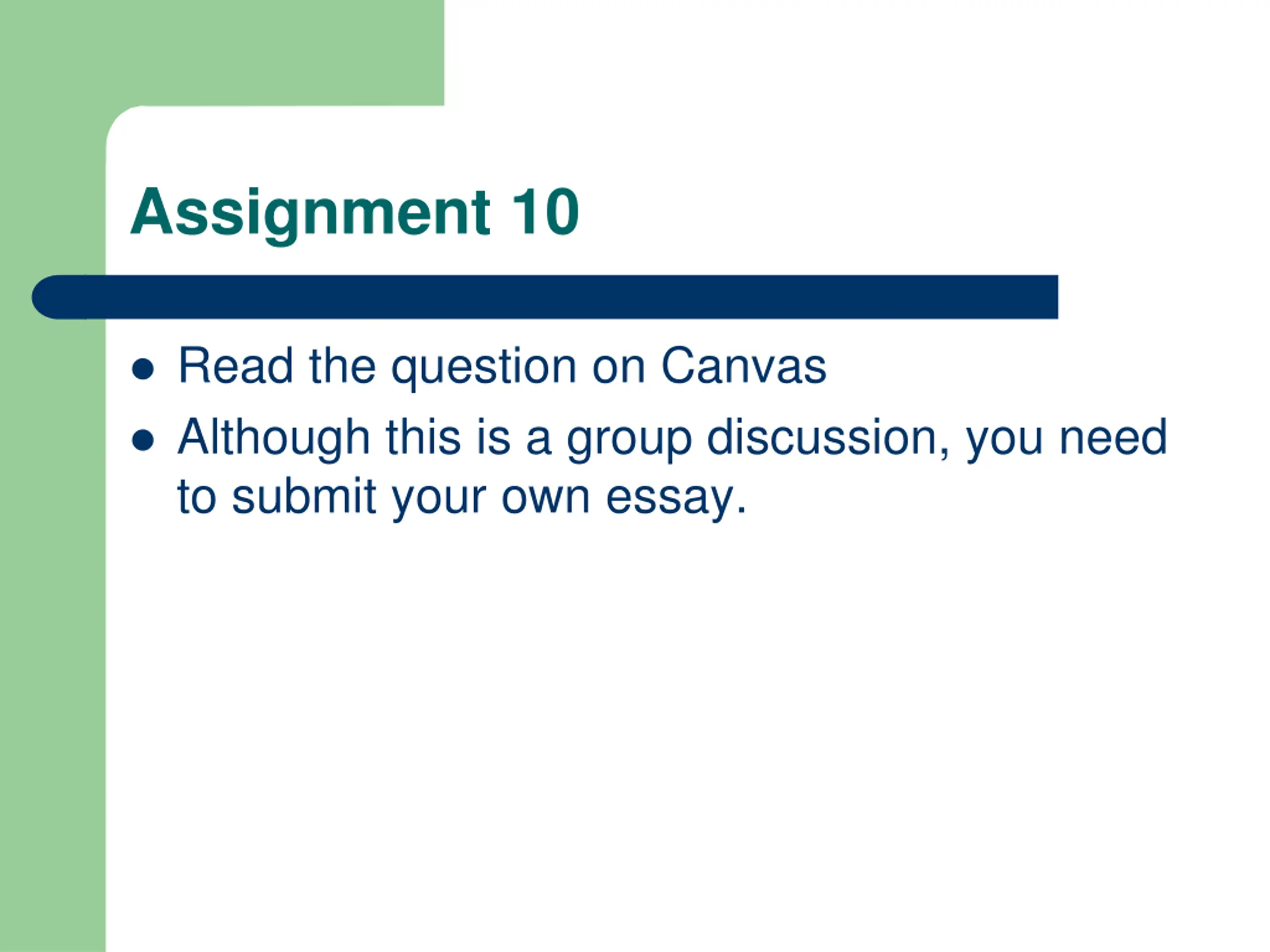 Assignment 10 Read the question on Canvas Although this is a group discussion, you need to submit your own essay.