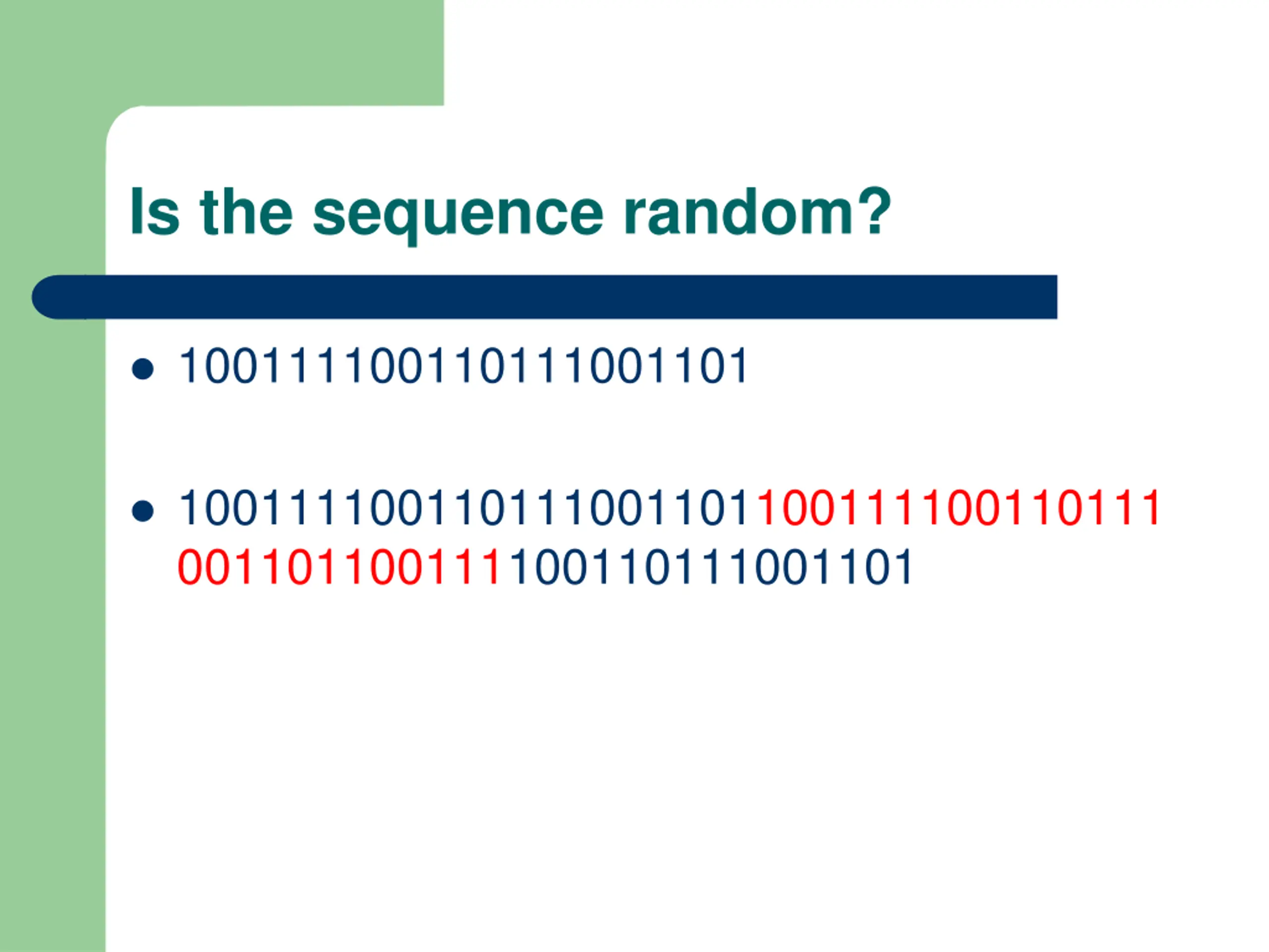 Is the sequence random? 100111100110111001101 100111100110111001101100111100110111 001101100111100110111001101