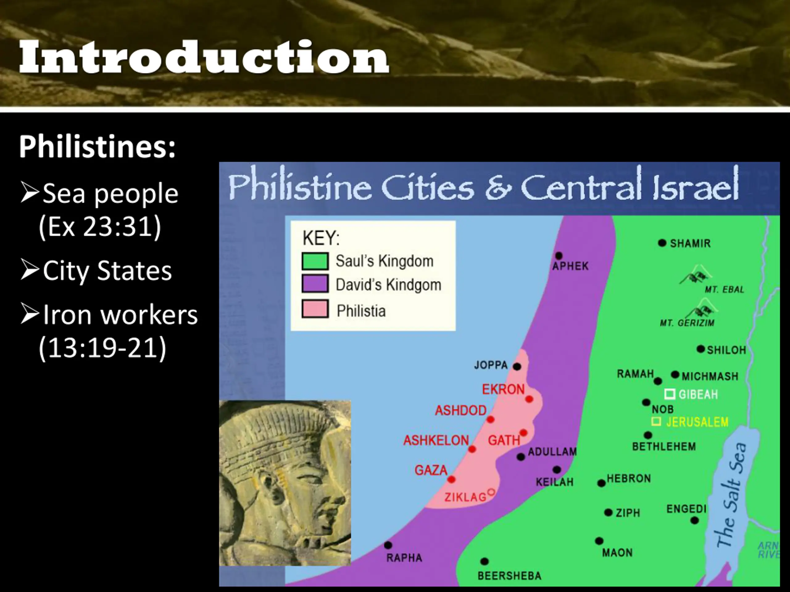 Introduction Philistines: Sea people (Ex 23:31) City States Iron workers (13:19-21)