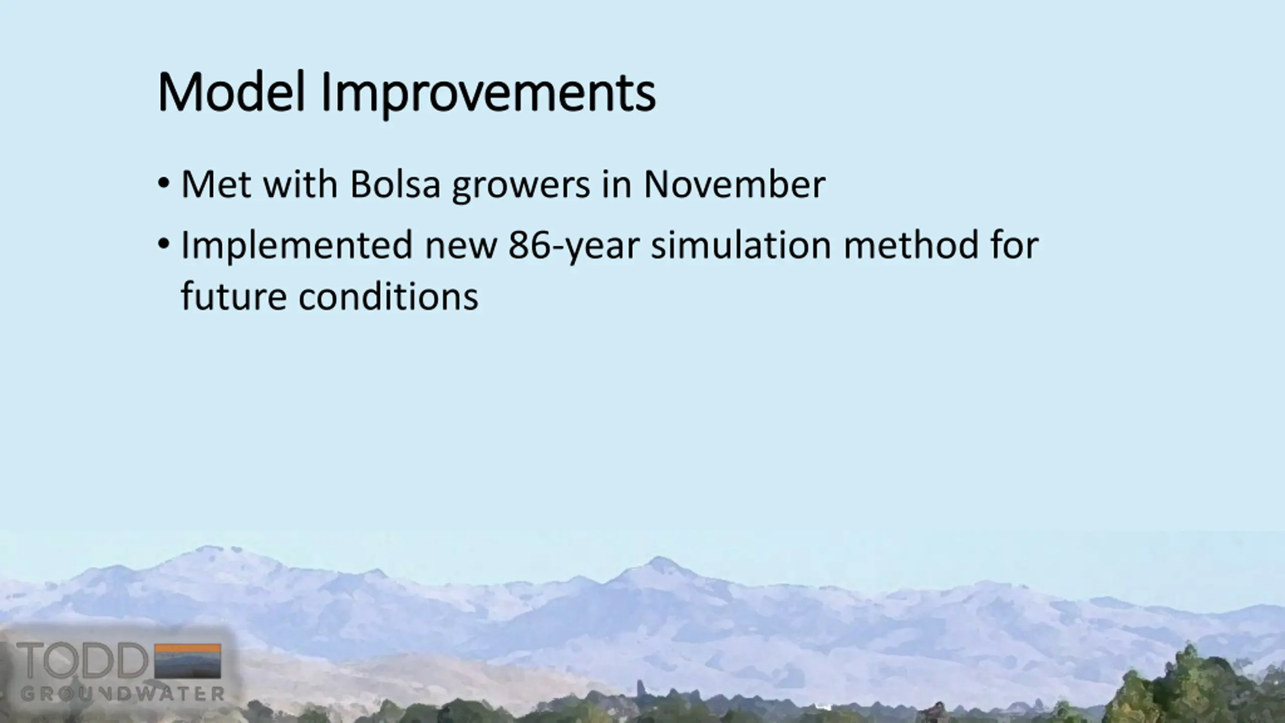 Model Improvements Model Improvements Met with Bolsa growers in November Implemented new 86-year simulation method for future conditions