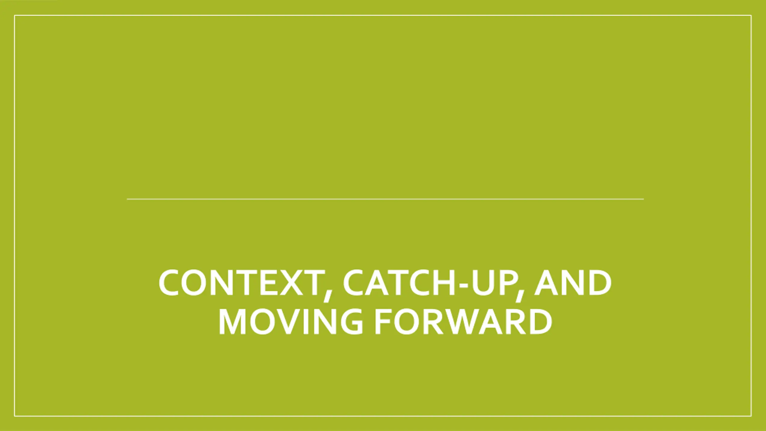 CONTEXT, CATCH-UP, AND MOVING FORWARD