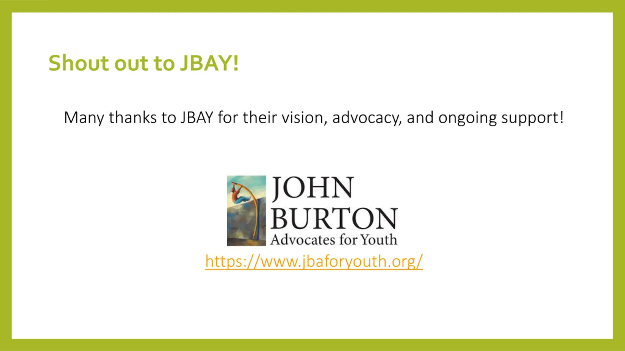 Shout out to JBAY! Many thanks to JBAY for their vision, advocacy, and ongoing support! https://www.jbaforyouth.org/