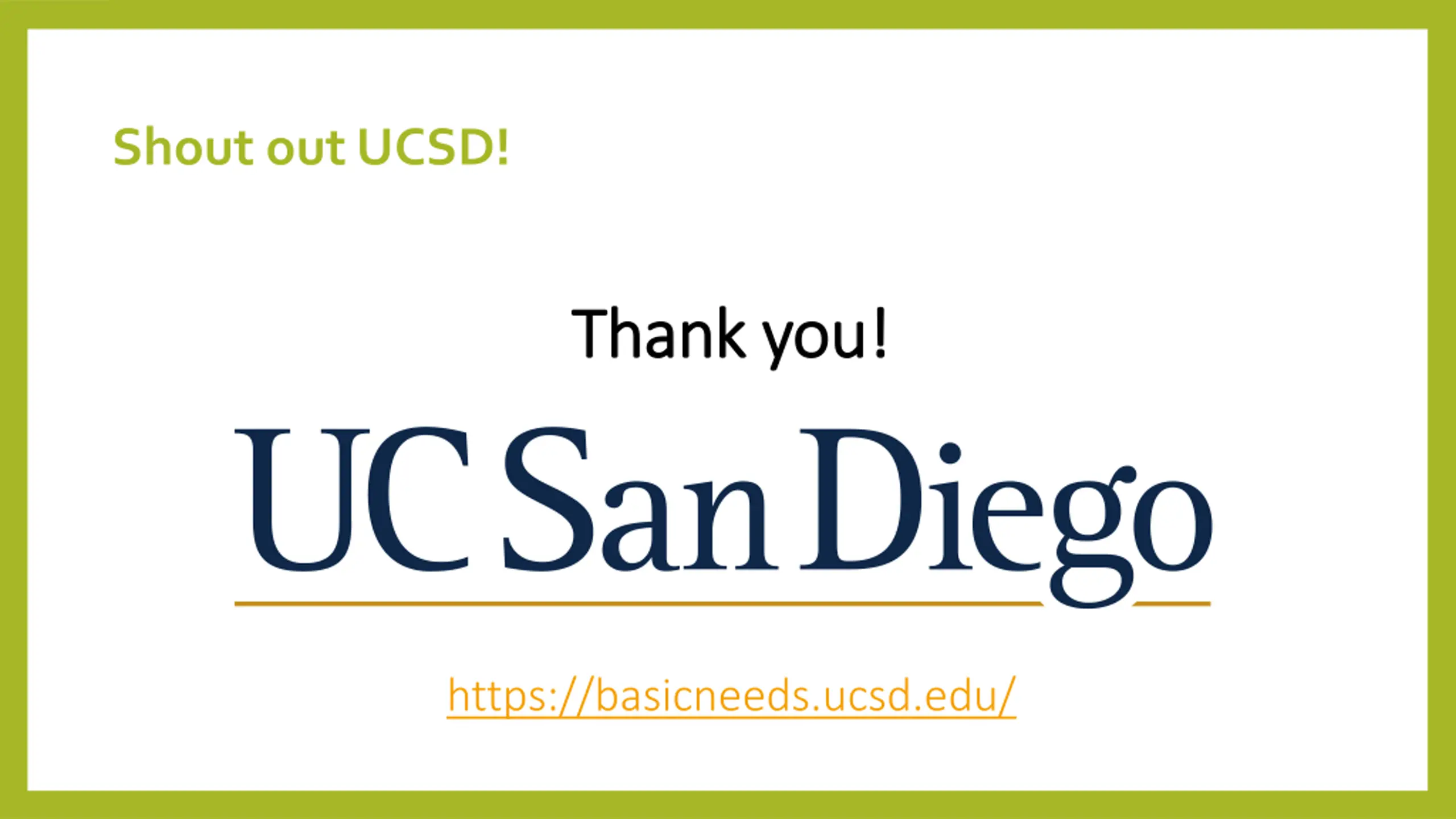 Shout out UCSD! Thank you! Thank you! https://basicneeds.ucsd.edu/
