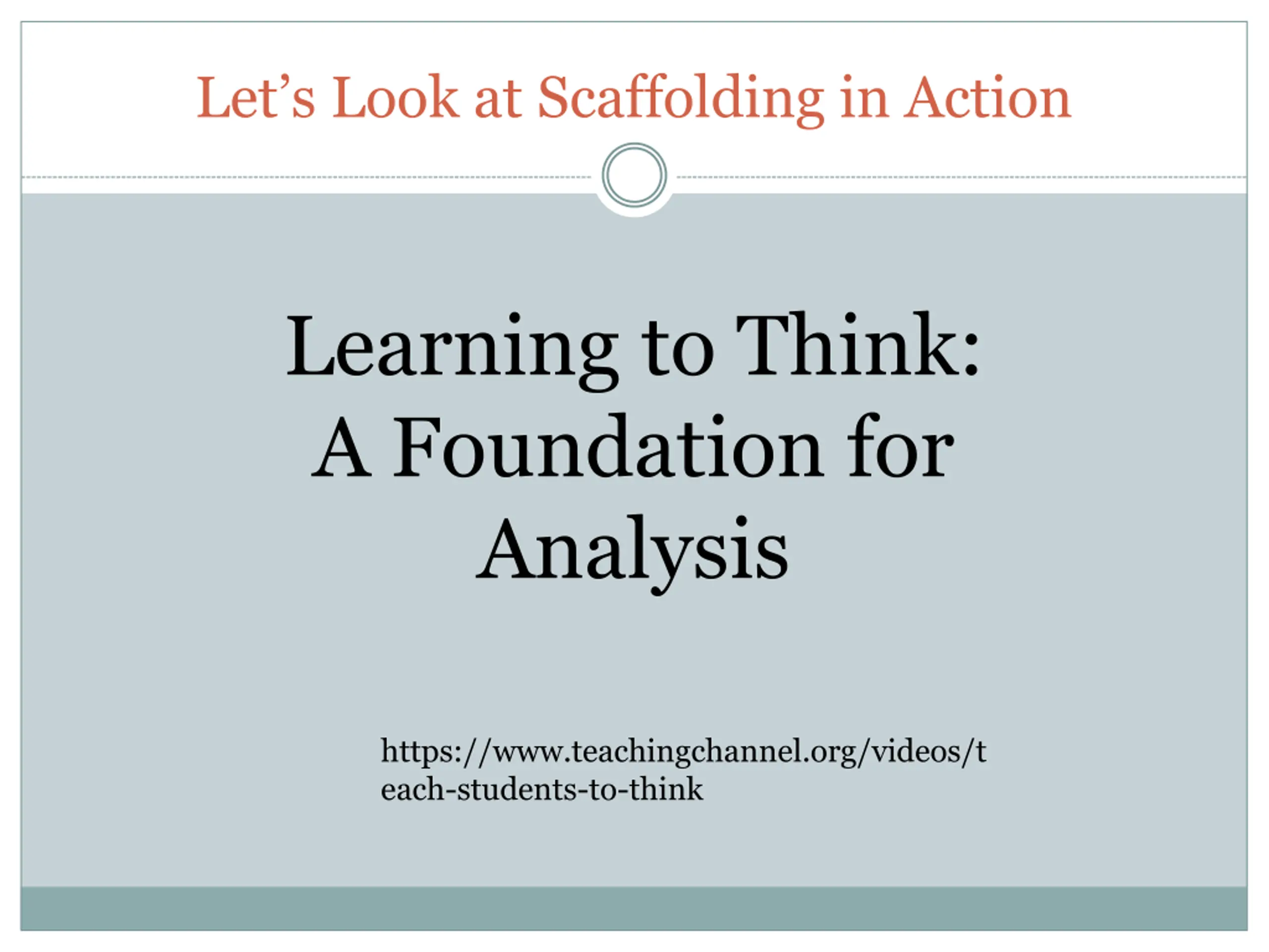 Lets Look at Scaffolding in Action Learning to Think: A Foundation for Analysis https://www.teachingchannel.org/videos/t each-students-to-think
