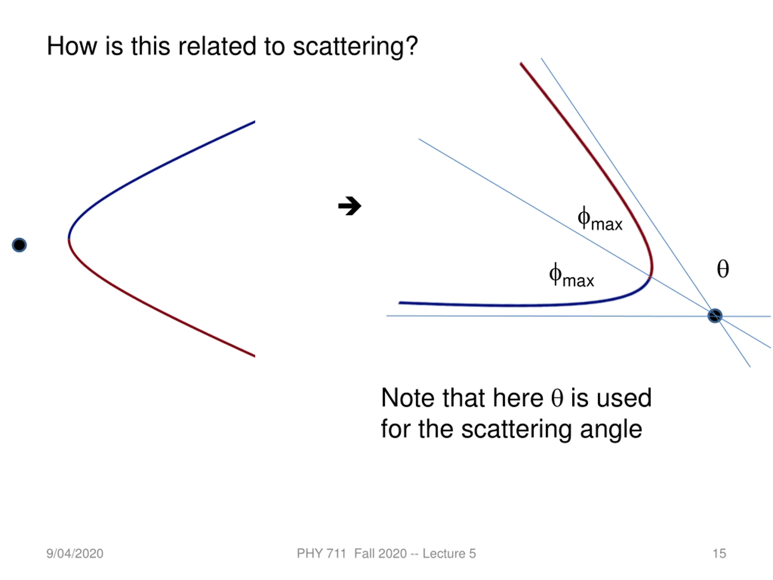 How is this related to scattering? max max Note that here is used for the scattering angle 9/04/2020 PHY 711 Fall 2020 -- Lecture 5 15