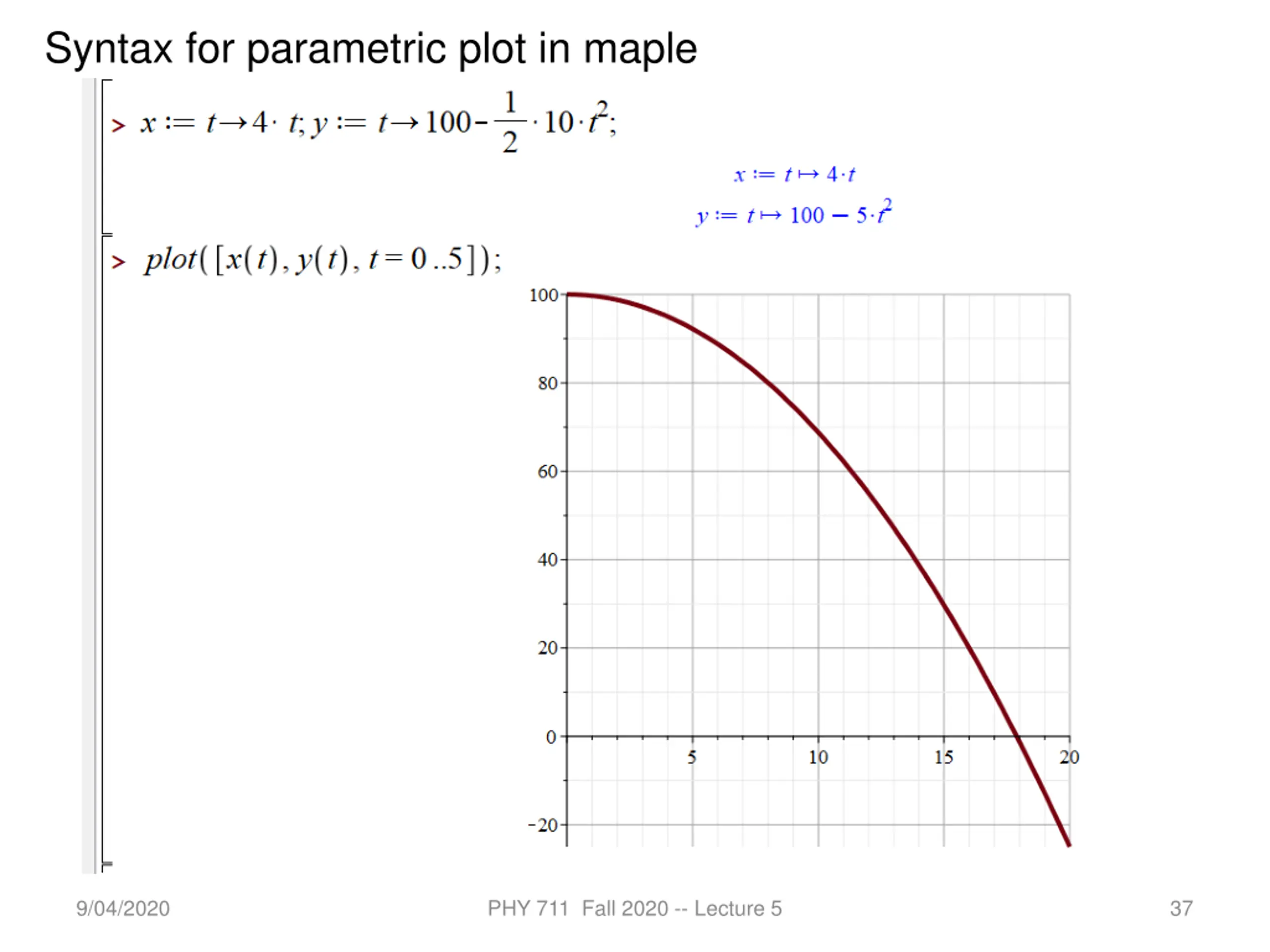 Syntax for parametric plot in maple 9/04/2020 PHY 711 Fall 2020 -- Lecture 5 37