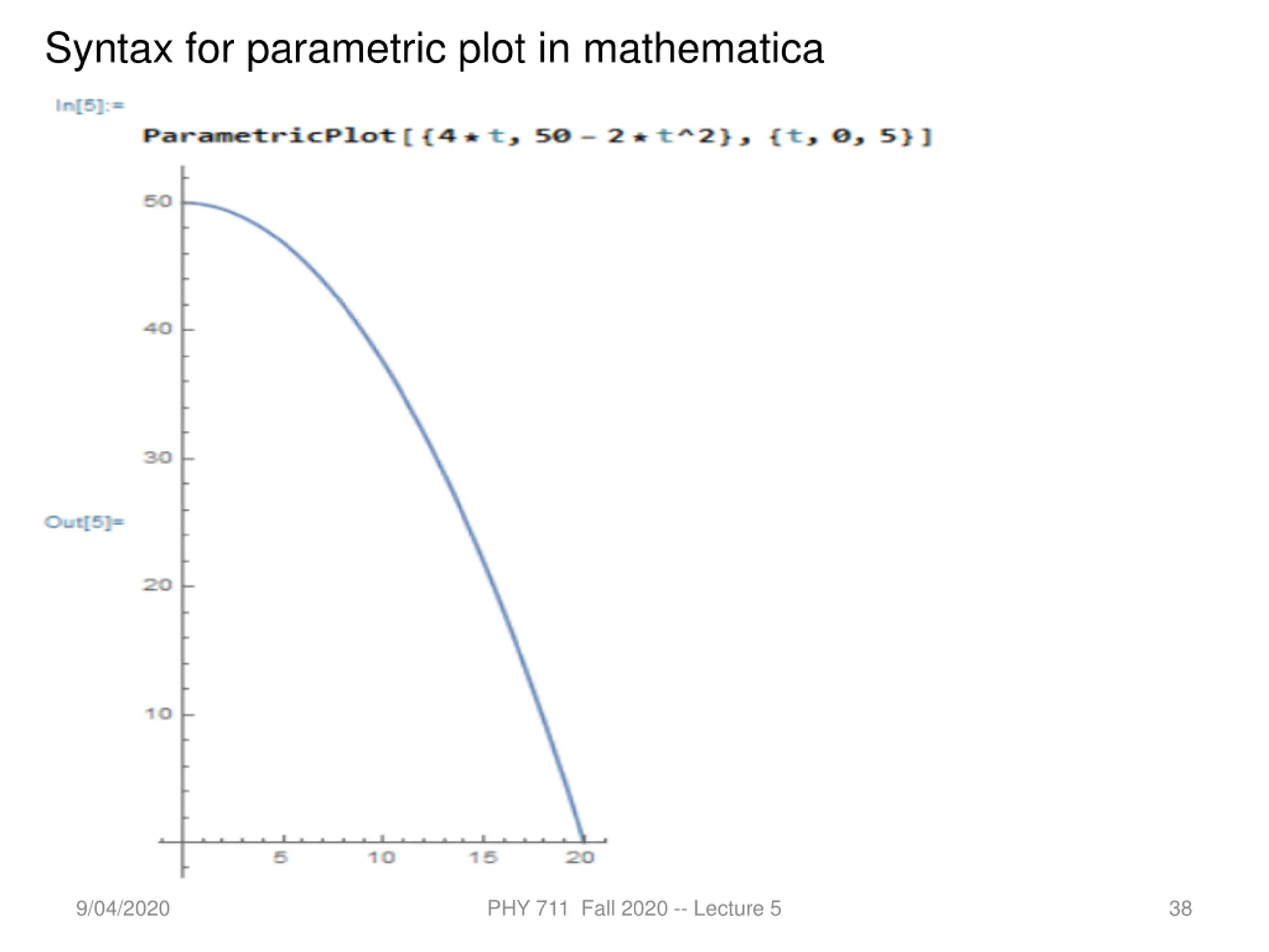 Syntax for parametric plot in mathematica 9/04/2020 PHY 711 Fall 2020 -- Lecture 5 38