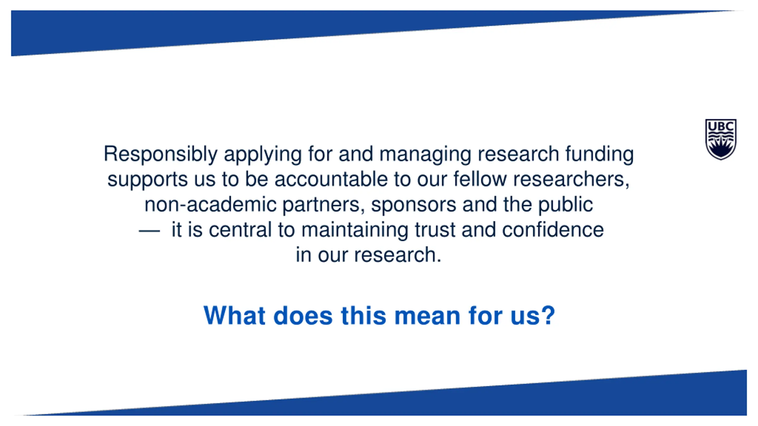 APPLYING FOR AND MANAGING FUNDING The Scholarly Integrity Initiative HTTPS://RESPONSIBLE.RESEARCH.UBC.CA