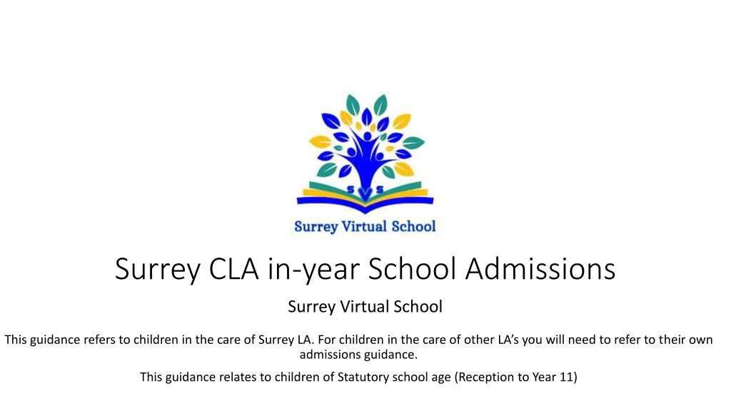 Surrey CLA in-year School Admissions Surrey Virtual School This guidance refers to children in the care of Surrey LA. For children in the care of other LA s you will need to refer to their own admissions guidance. This guidance relates to children of Statutory school age (Reception to Year 11)