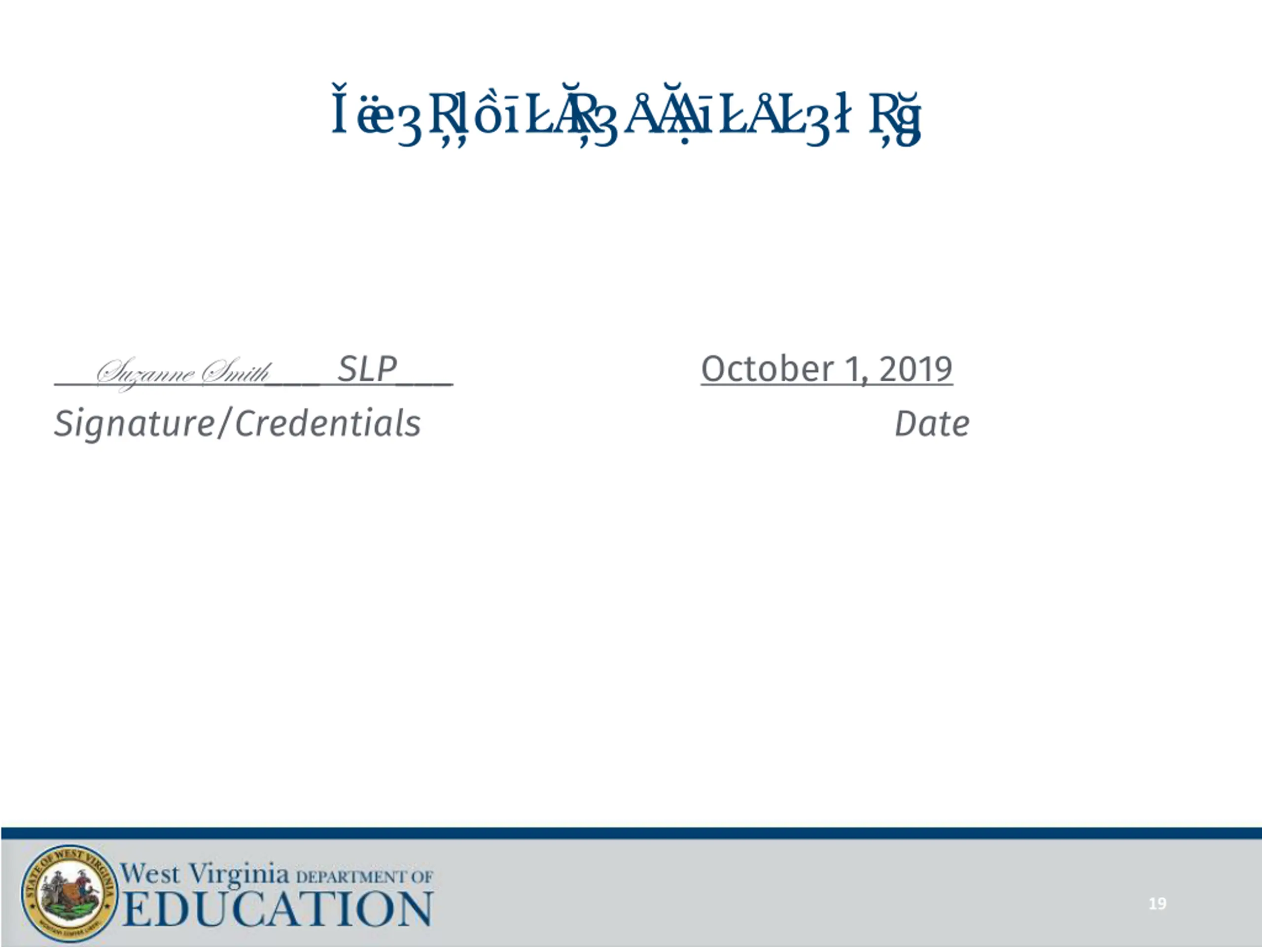 Si gna ture a nd Credenti a l s __Suzanne Smith___ SLP___ Signature/Credentials October 1, 2019 Date 19