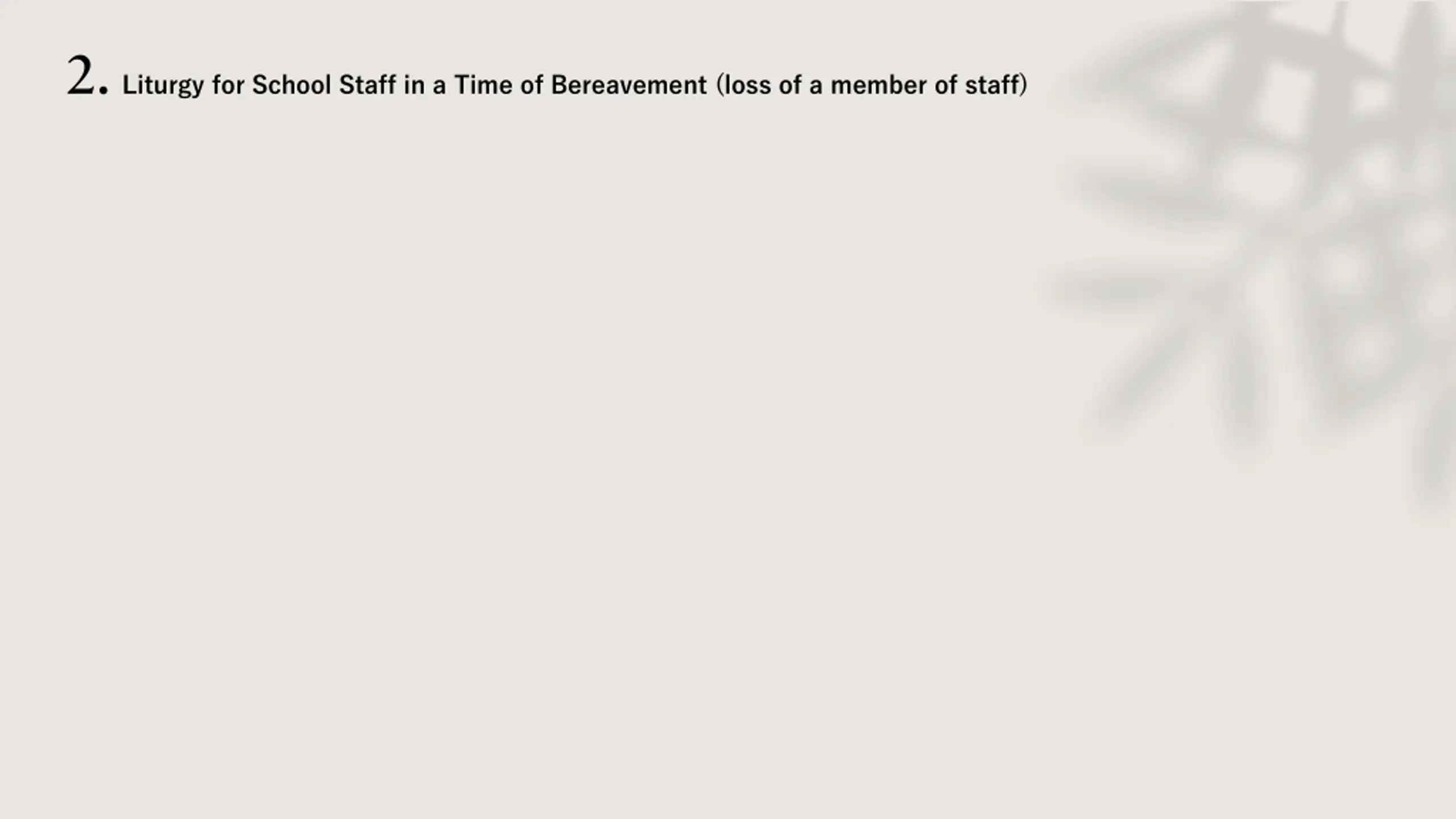 2. Liturgy for School Staff in a Time of Bereavement (loss of a member of staff)