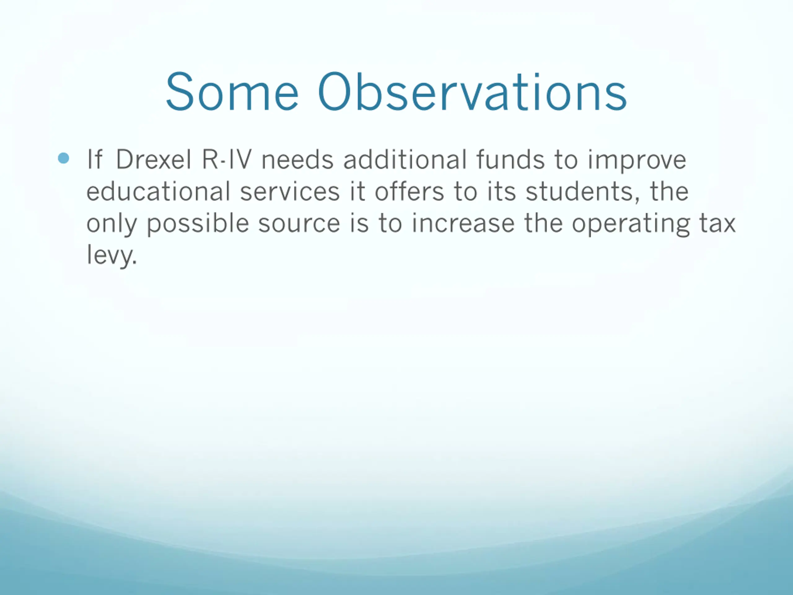 Some Observations If Drexel R-IV needs additional funds to improve educational services it offers to its students, the only possible source is to increase the operating tax levy.