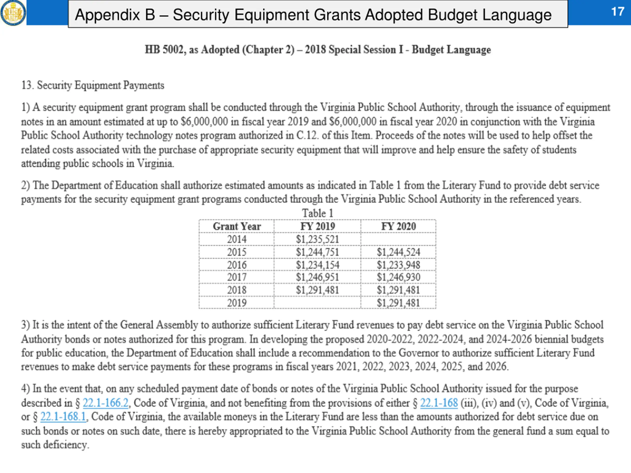 17 Appendix B Security Equipment Grants Adopted Budget Language