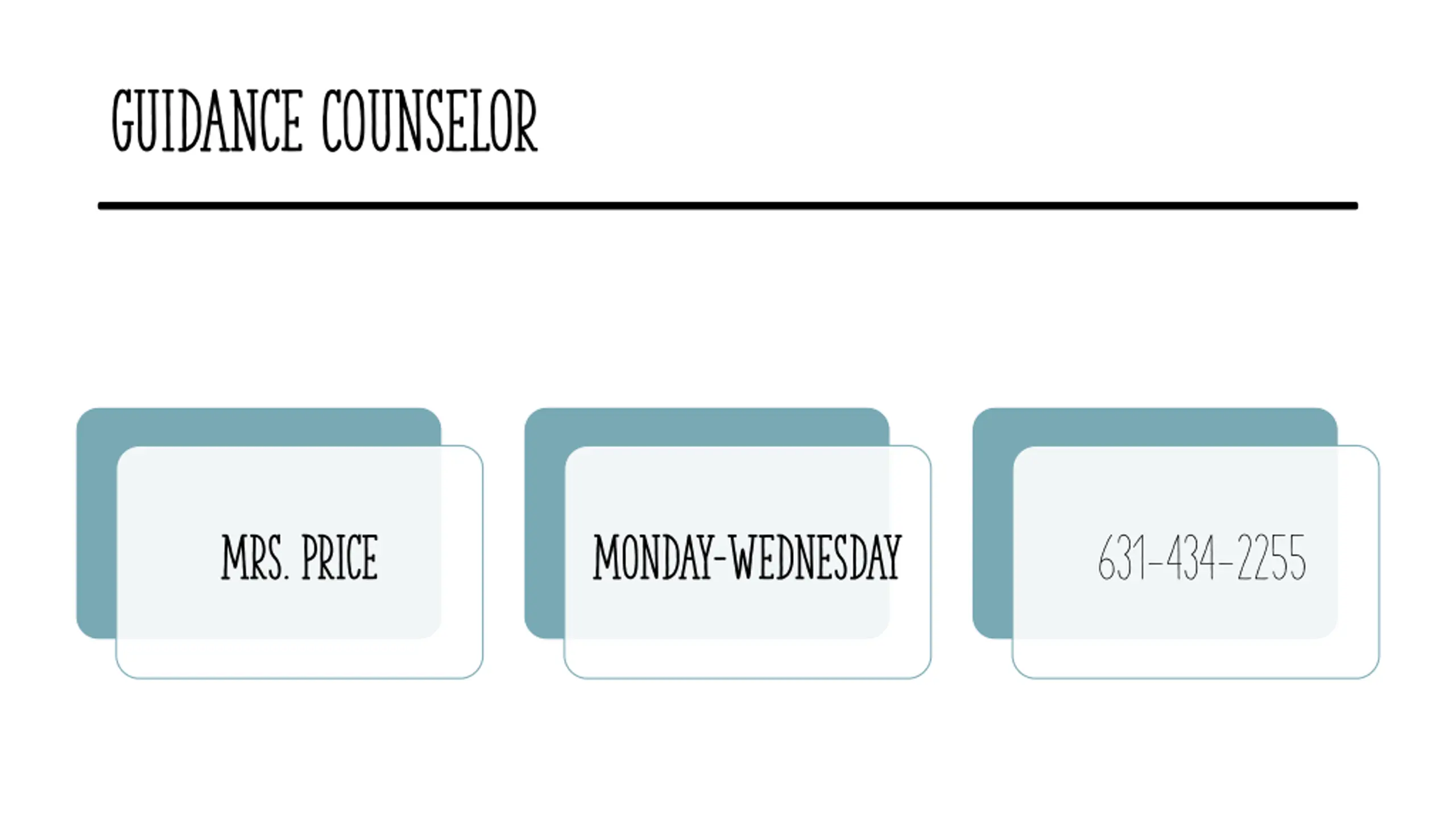 Guidance Counselor Mrs. Price Monday-Wednesday 631-434-2255