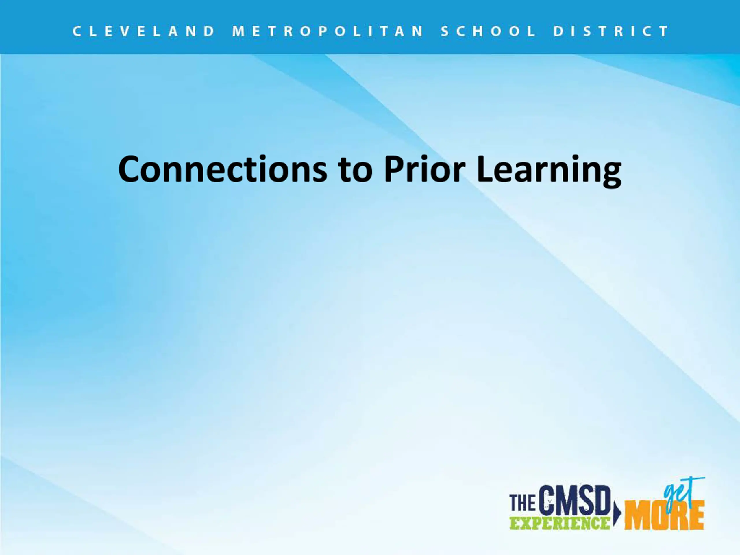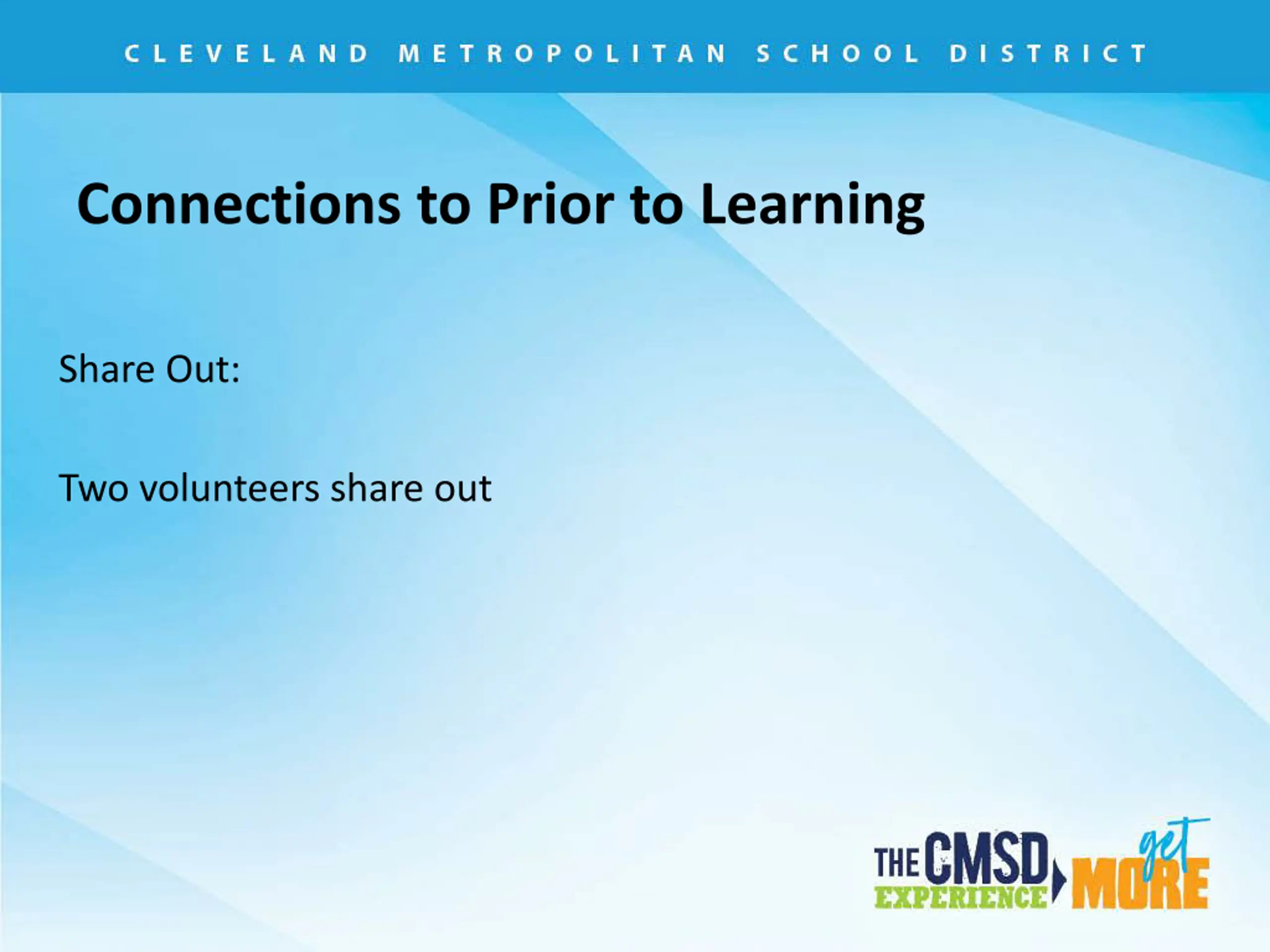 Connections to Prior to Learning Share Out: Two volunteers share out