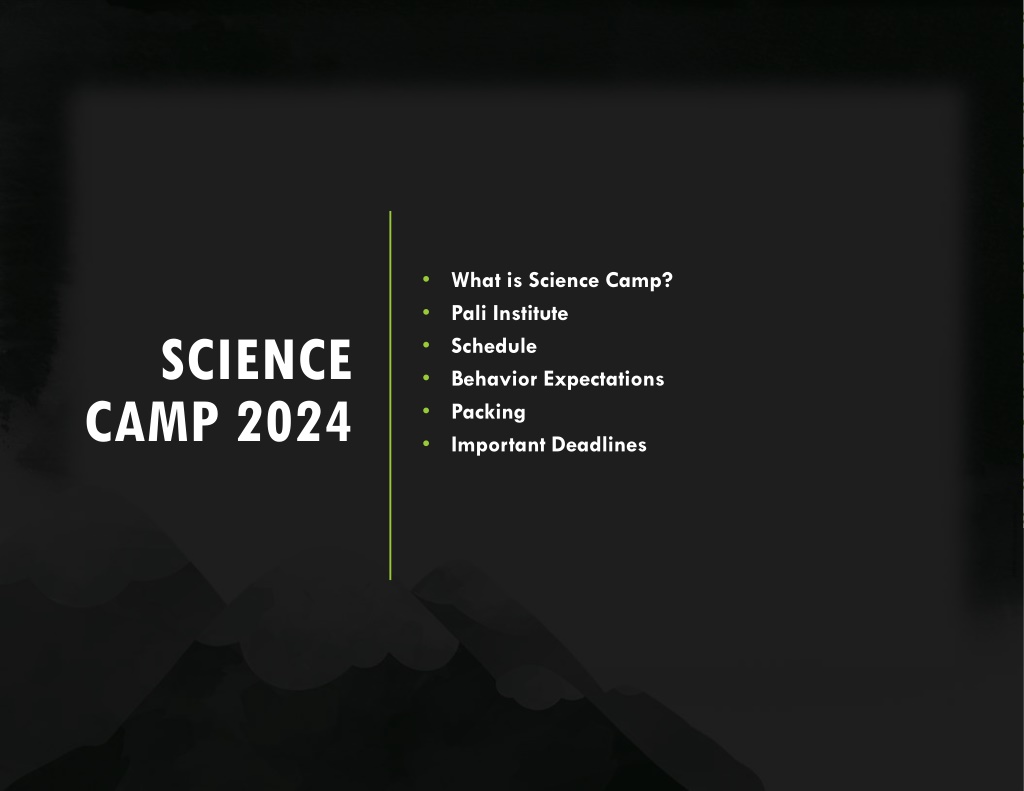 What is Science Camp? Pali Institute Schedule Behavior Expectations Packing Important Deadlines SCIENCE CAMP 2024