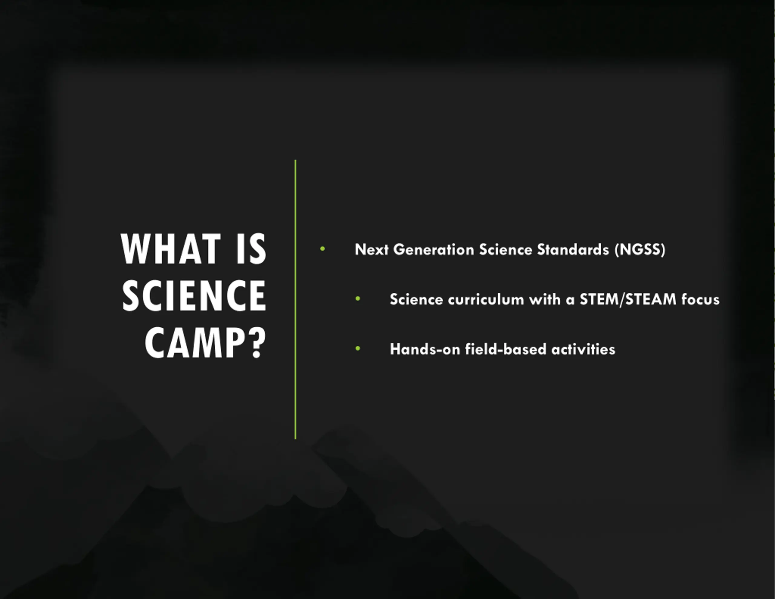 WHAT IS SCIENCE CAMP? Next Generation Science Standards (NGSS) Science curriculum with a STEM/STEAM focus Hands-on field-based activities