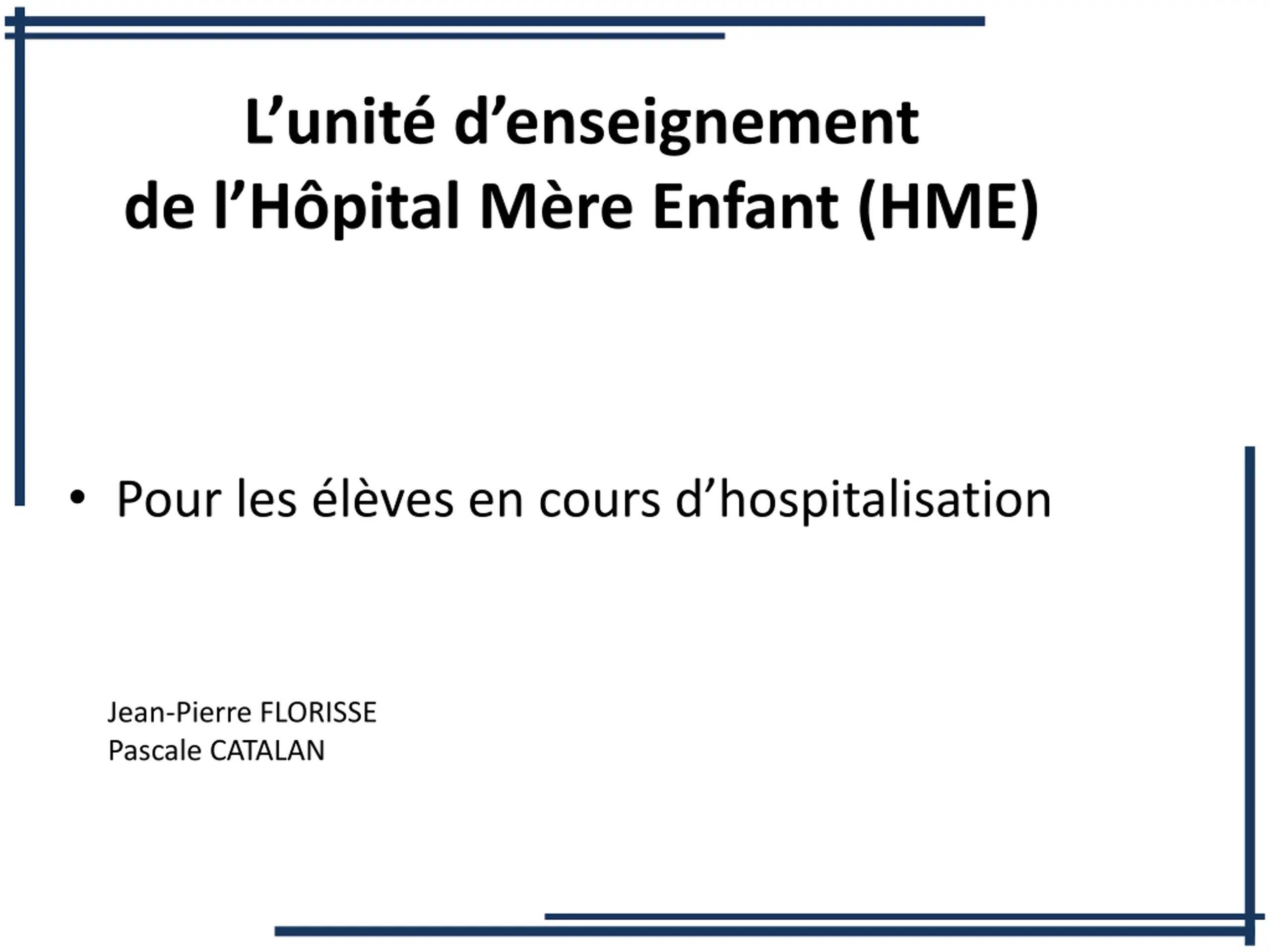 Lunit denseignement de l H pital M re Enfant (HME) Pour les l ves en cours d hospitalisation Jean-Pierre FLORISSE Pascale CATALAN