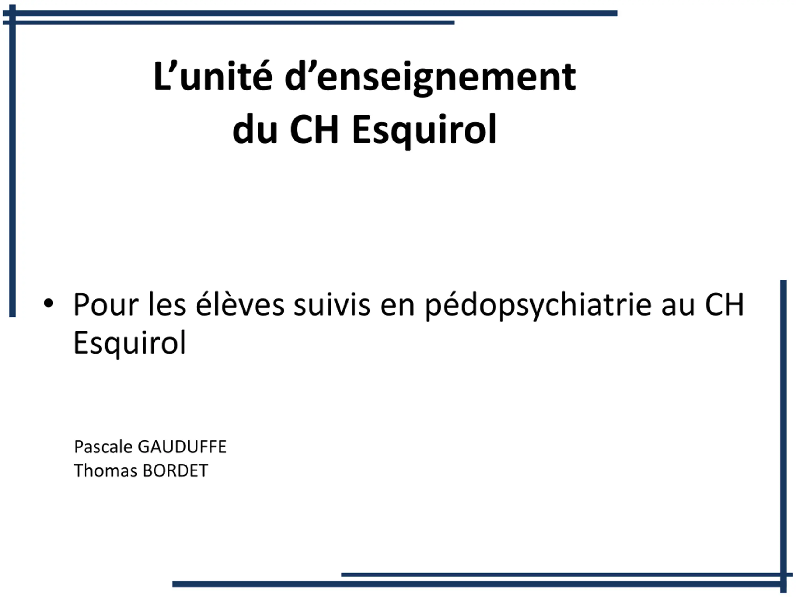 Lunit denseignement du CH Esquirol Pour les l ves suivis en p dopsychiatrie au CH Esquirol Pascale GAUDUFFE Thomas BORDET