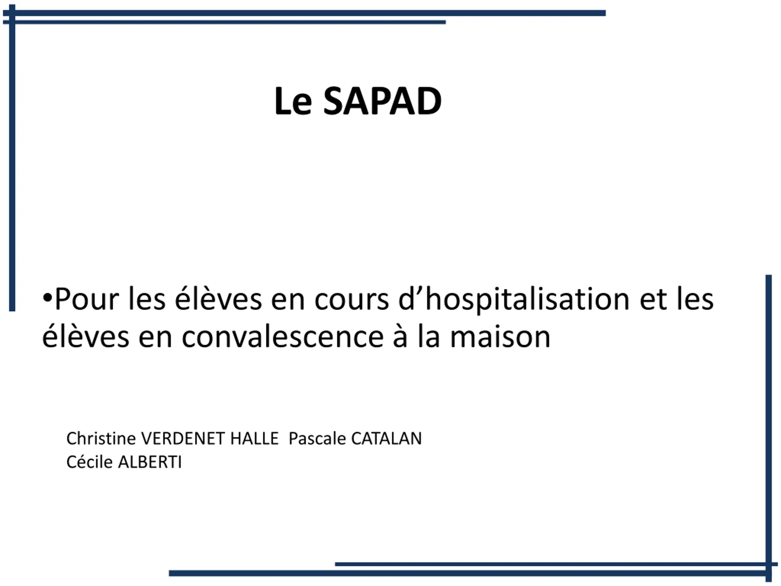 Le SAPAD Pour les l ves en cours d hospitalisation et les l ves en convalescence la maison Christine VERDENET HALLE Pascale CATALAN C cile ALBERTI