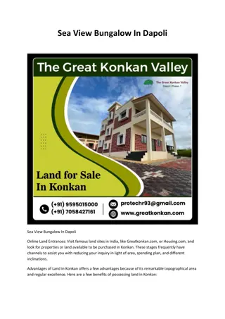 Sea View Bungalow In Dapoli - greatkonkan.com Sea View Bungalow In Dapoli - greatkonkan.com Online Land Entryways: Visit famous land sites in India, like Greatkonkan.com, or Housing.com, and look for properties or land available to be purchased in Konkan. These stages frequently have channels to assist you with reducing your hunt in light of area, spending plan, and different inclinations. Advantages of Land in Konkan offers a few advantages because of its special geological area and normal excellence. Here are a few benefits of claiming land in Konkan: