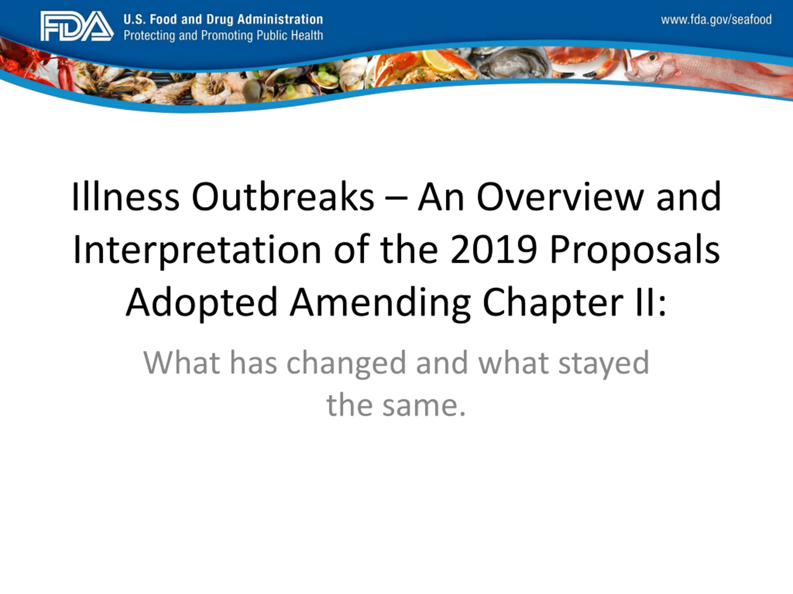 FDA_Swish_SeafoodXXX.png Illness Outbreaks An Overview and Interpretation of the 2019 Proposals Adopted Amending Chapter II: What has changed and what stayed the same.