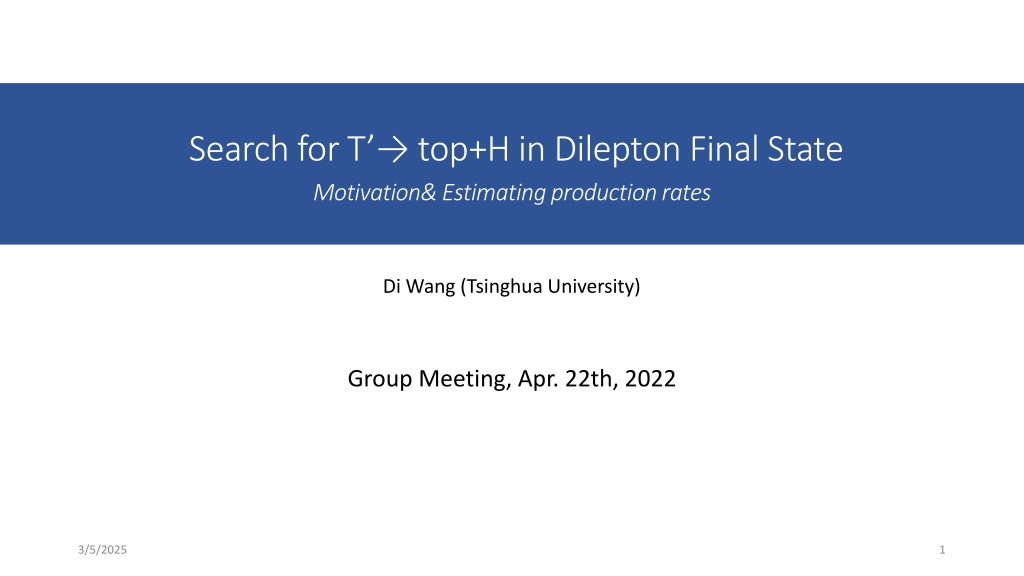 Search for T top+H in Dilepton Final State Motivation& Estimating production rates Di Wang (Tsinghua University) Group Meeting, Apr. 22th, 2022 3/5/2025 1