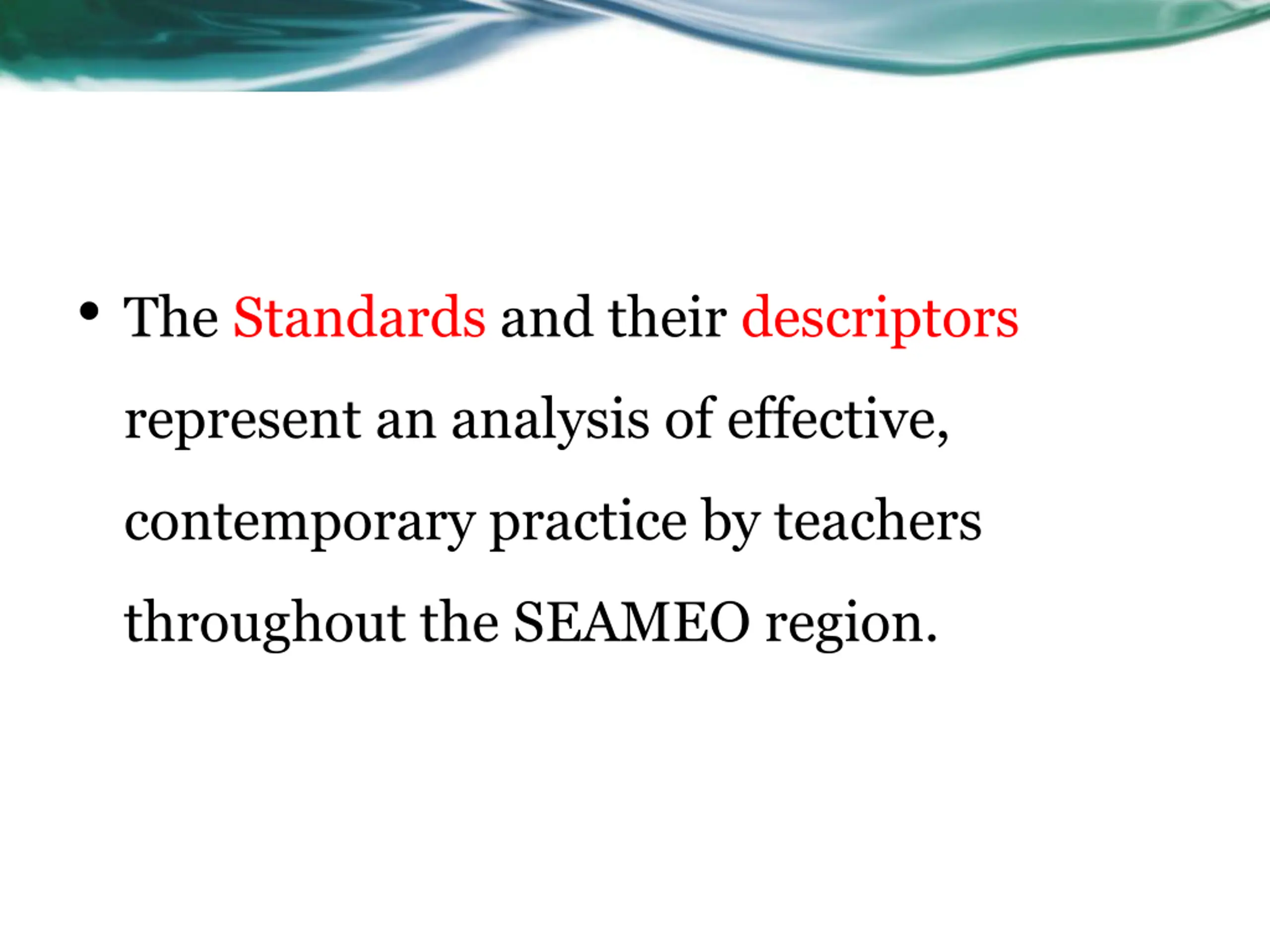 The Standards and their descriptors represent an analysis of effective, contemporary practice by teachers throughout the SEAMEO region.