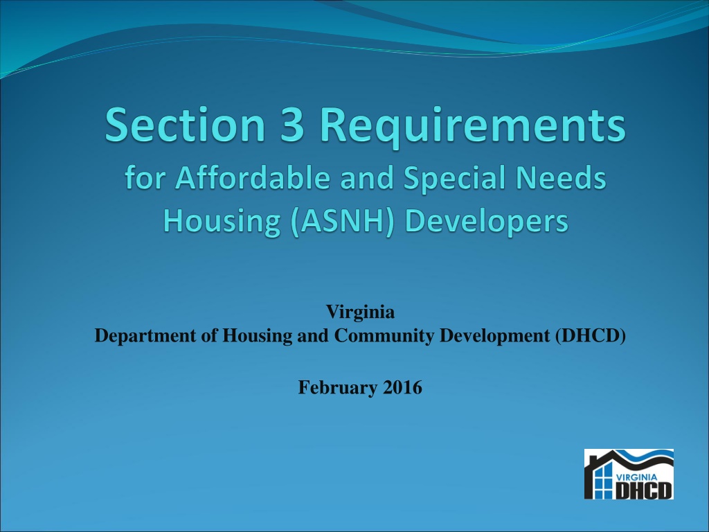 Virginia Department of Housing and Community Development (DHCD) February 2016