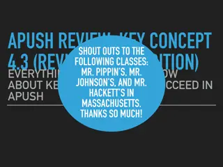 The period of 1845-1854 was marked by significant sectional tension and debates over westward expansion in the United States. Key events such as the Mexican War, the Compromise of 1850, and the Wilmot Proviso shaped the political landscape of the time. This era saw clashes between North and South on issues like Manifest Destiny, territories acquired from Mexico, and compromises sought in the face of growing tensions. Explore the political climate, key personalities involved, and the impact of westward expansion on the nation during this crucial period.