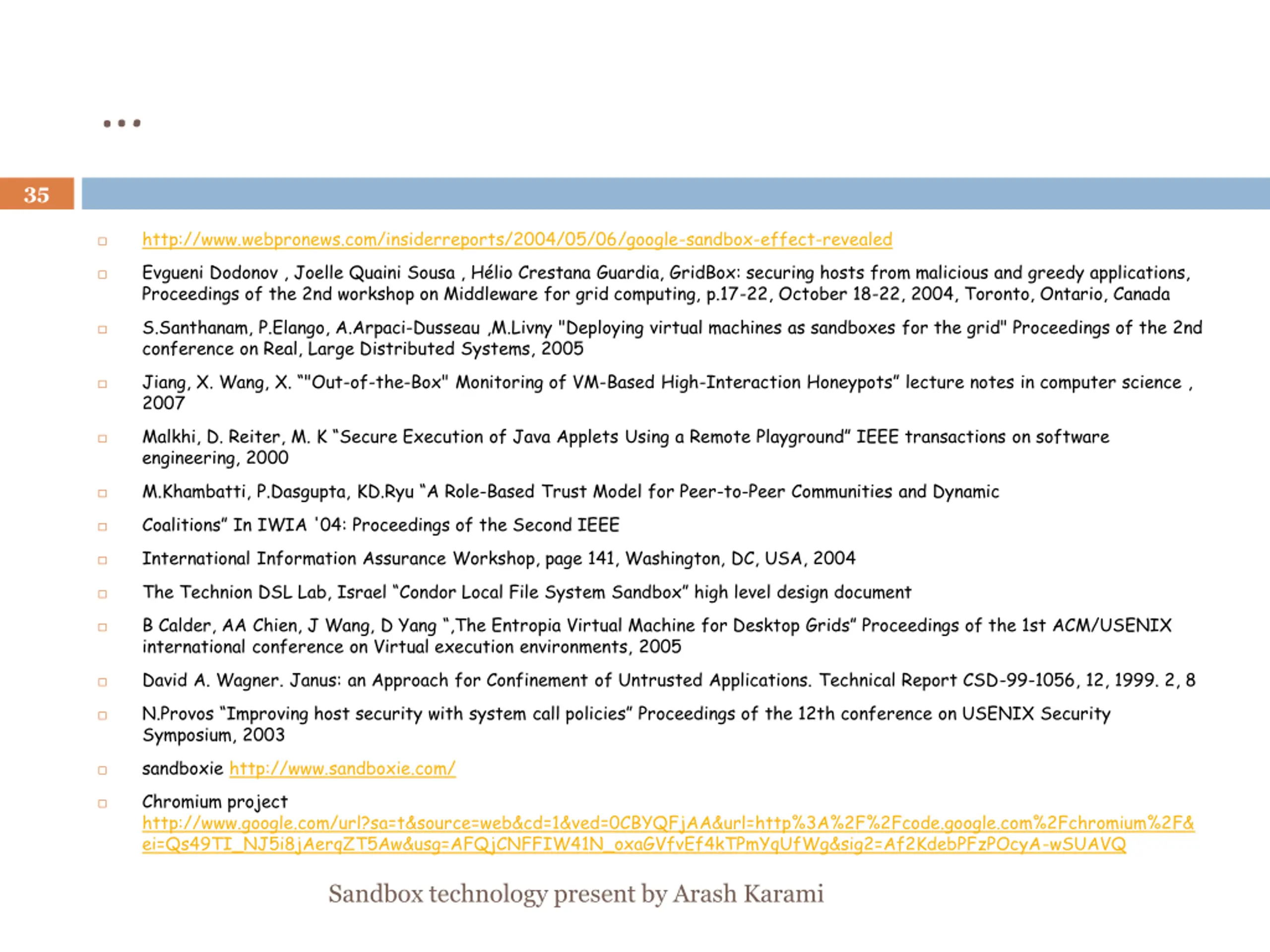 References 33/36 Sandbox technology present by Arash Karami