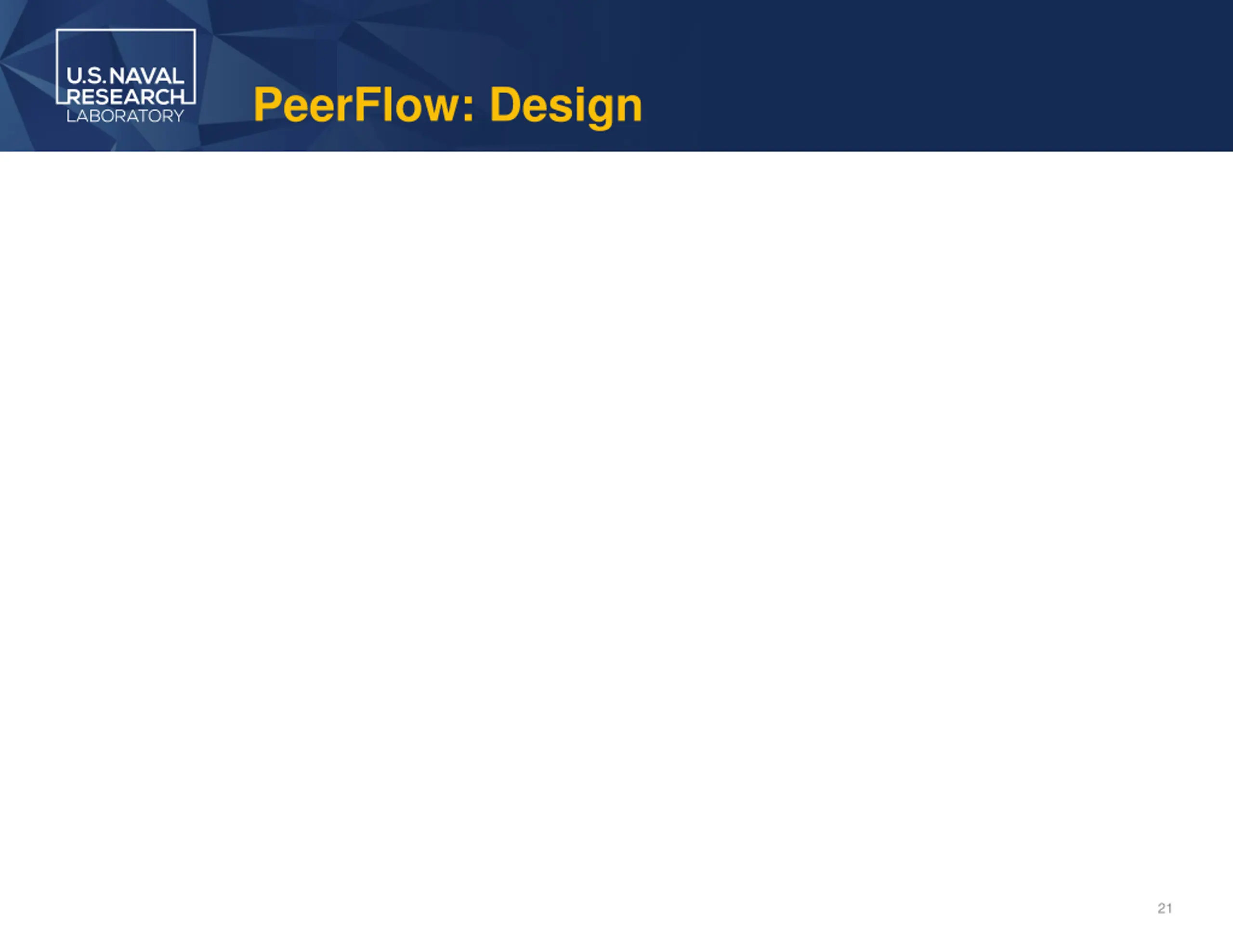 PeerFlow: Design 1. Measuring relays (largest by capacity)record total bytes transferred with all other relays 2. Measurements added to random noise and divided by position probabilities. Result ( i) submitted to BW Authorities (BWAuths). 2 1 3 U.S. Naval Research Laboratory 23