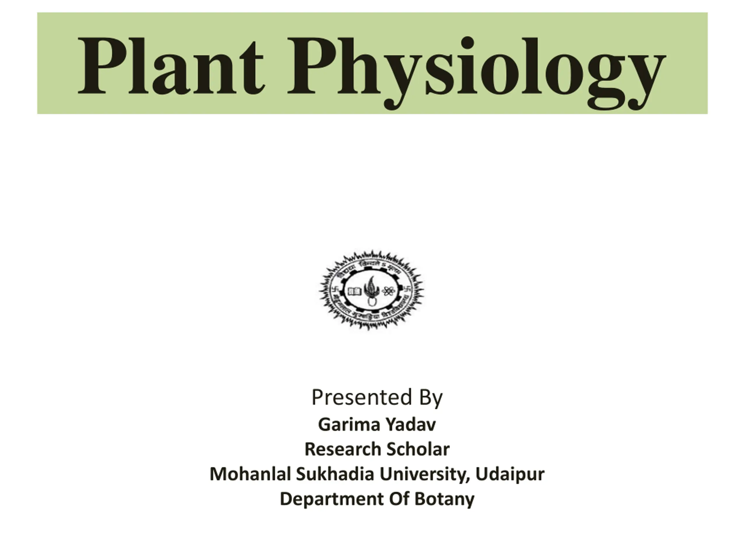Plant Physiology Presented By Garima Yadav Research Scholar Mohanlal Sukhadia University, Udaipur Department Of Botany