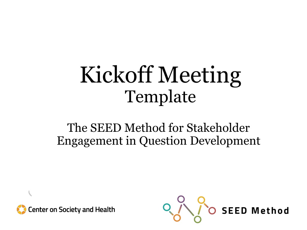 Kickoff Meeting Template The SEED Method for Stakeholder Engagement in Question Development