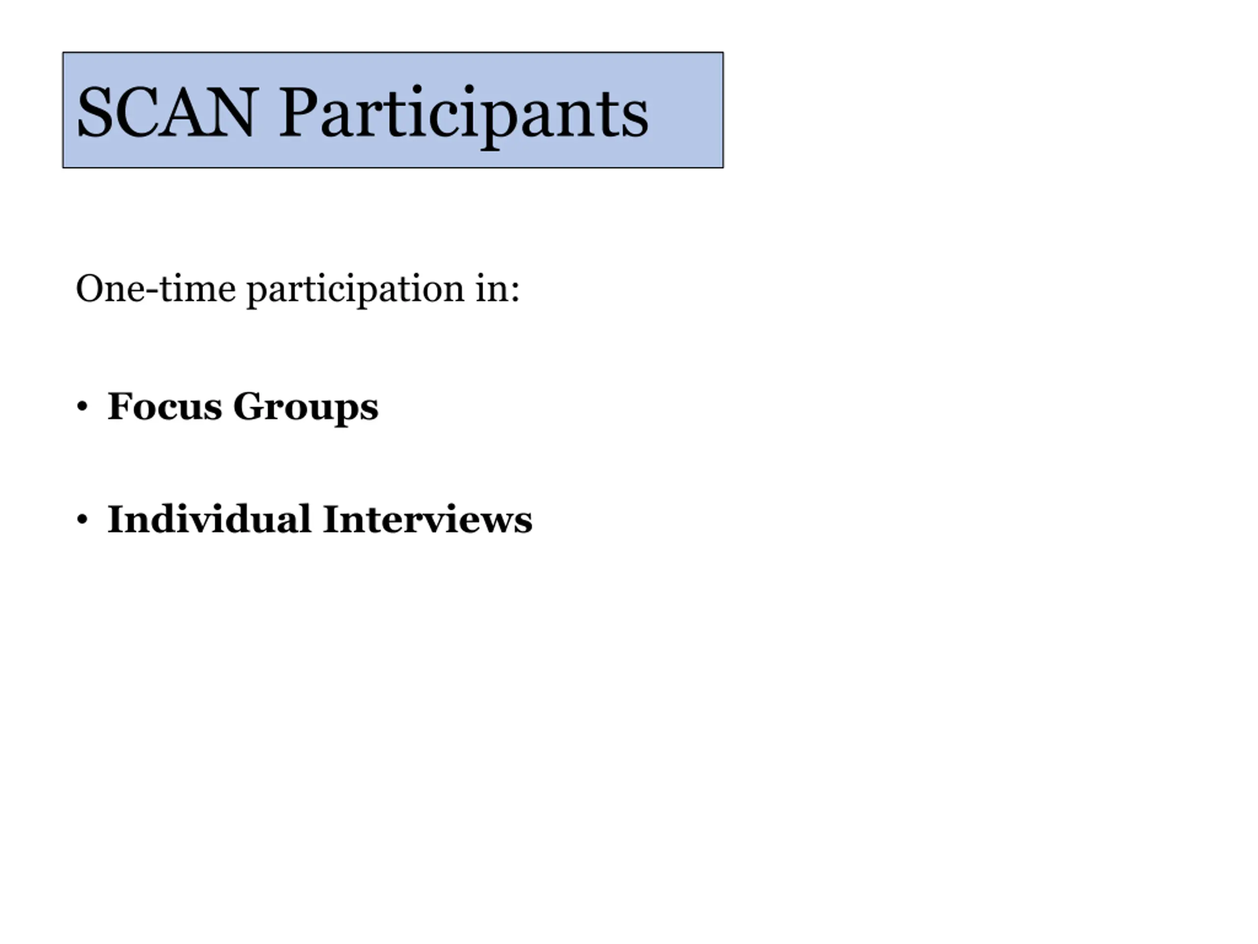 SCAN Participants One-time participation in: Focus Groups Individual Interviews