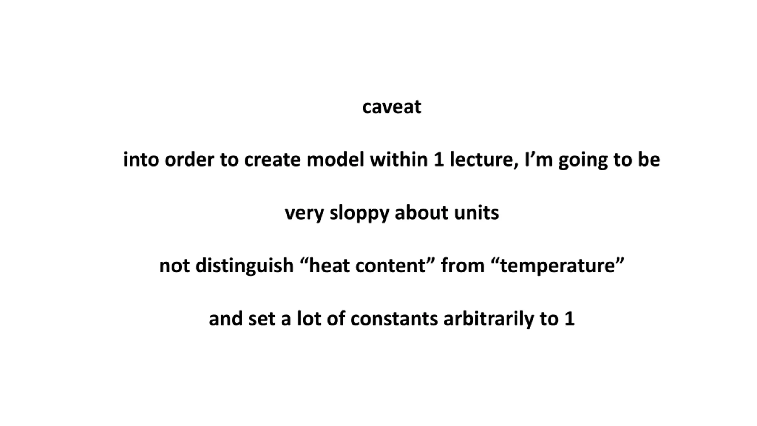 caveat into order to create model within 1 lecture, I m going to be very sloppy about units not distinguish heat content from temperature and set a lot of constants arbitrarily to 1