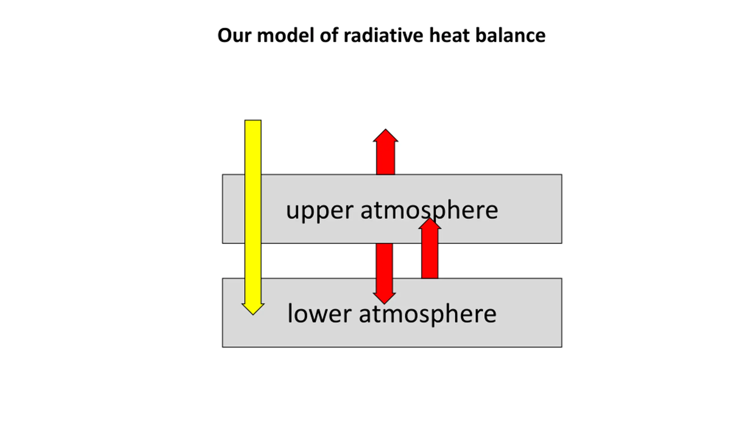 Our model of radiative heat balance upper atmosphere lower atmosphere