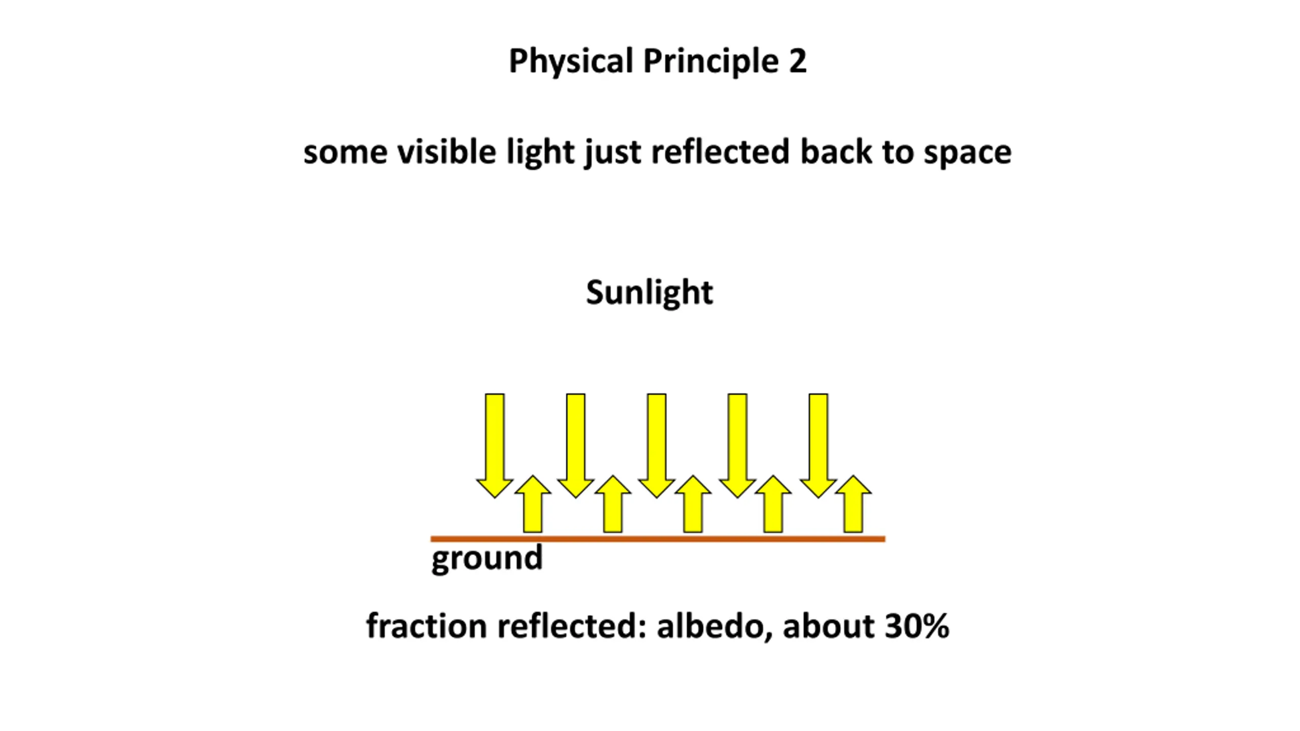 Physical Principle 2 some visible light just reflected back to space Sunlight ground fraction reflected: albedo, about 30%