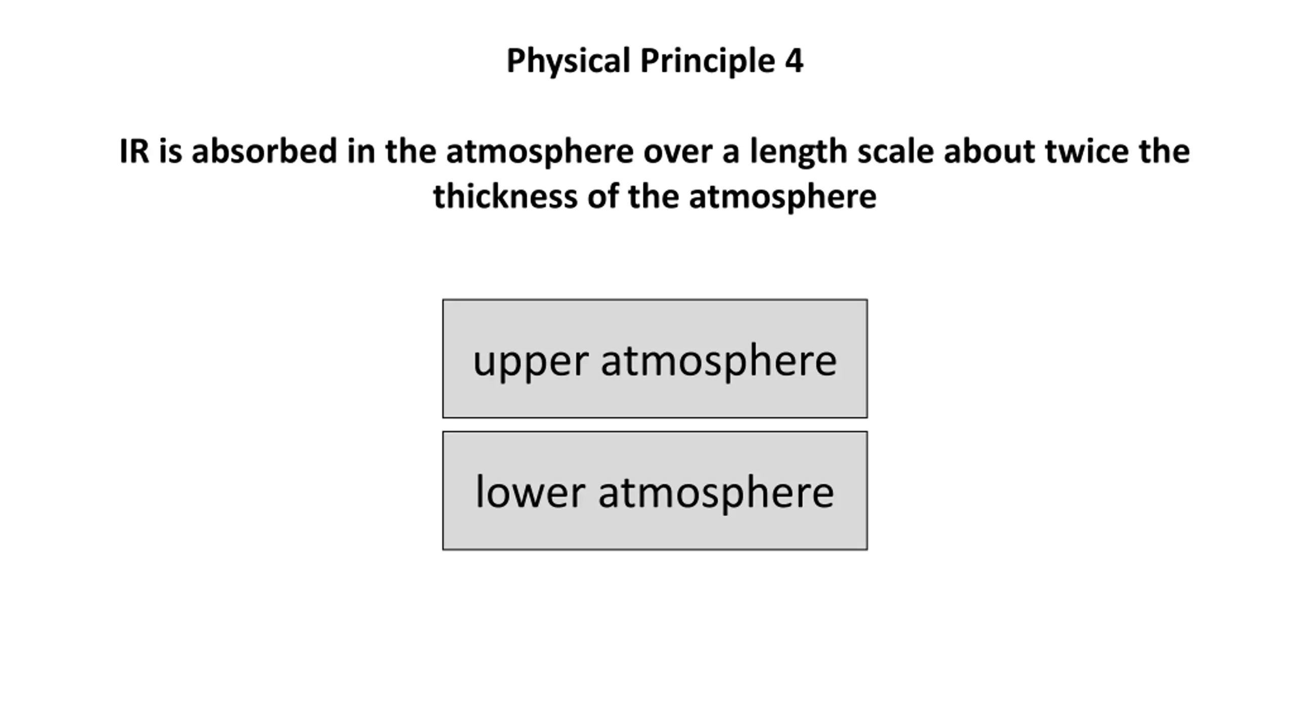 Physical Principle 4 IR is absorbed in the atmosphere over a length scale about twice the thickness of the atmosphere upper atmosphere lower atmosphere