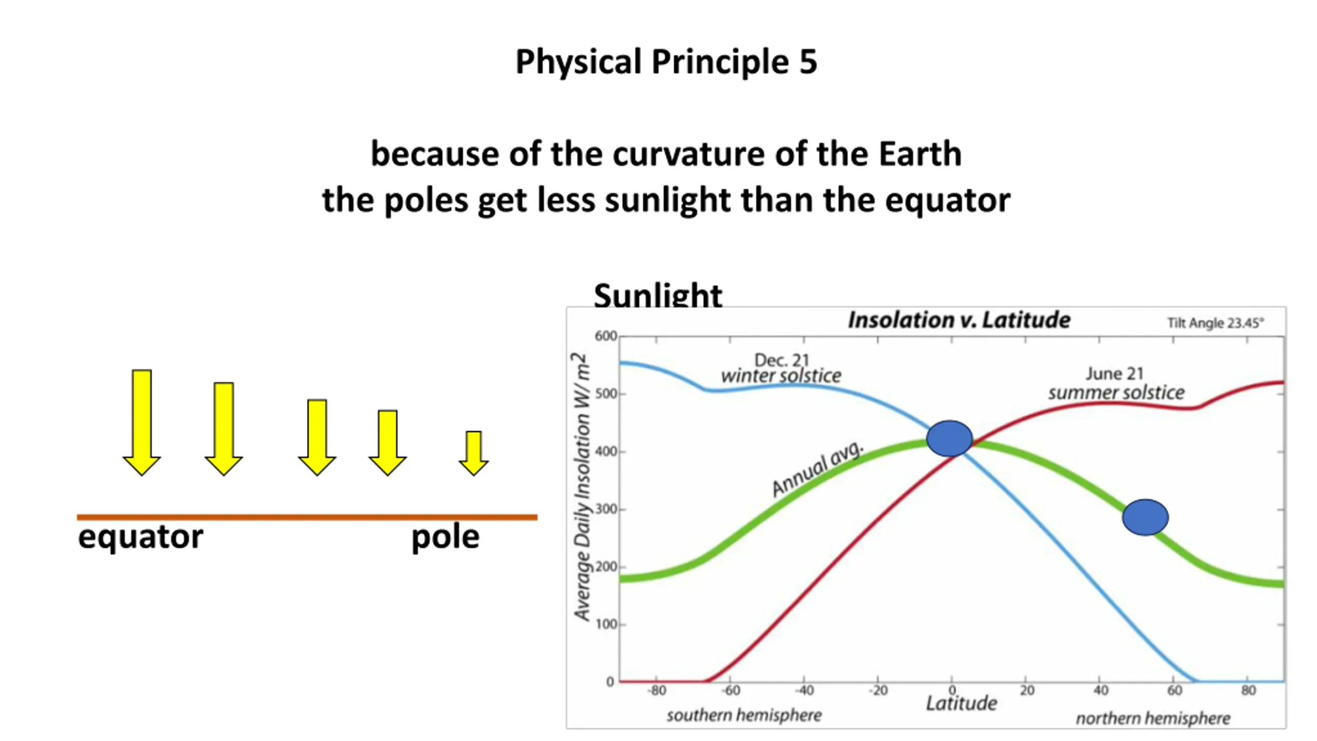 Physical Principle 5 because of the curvature of the Earth the poles get less sunlight than the equator Sunlight equator pole