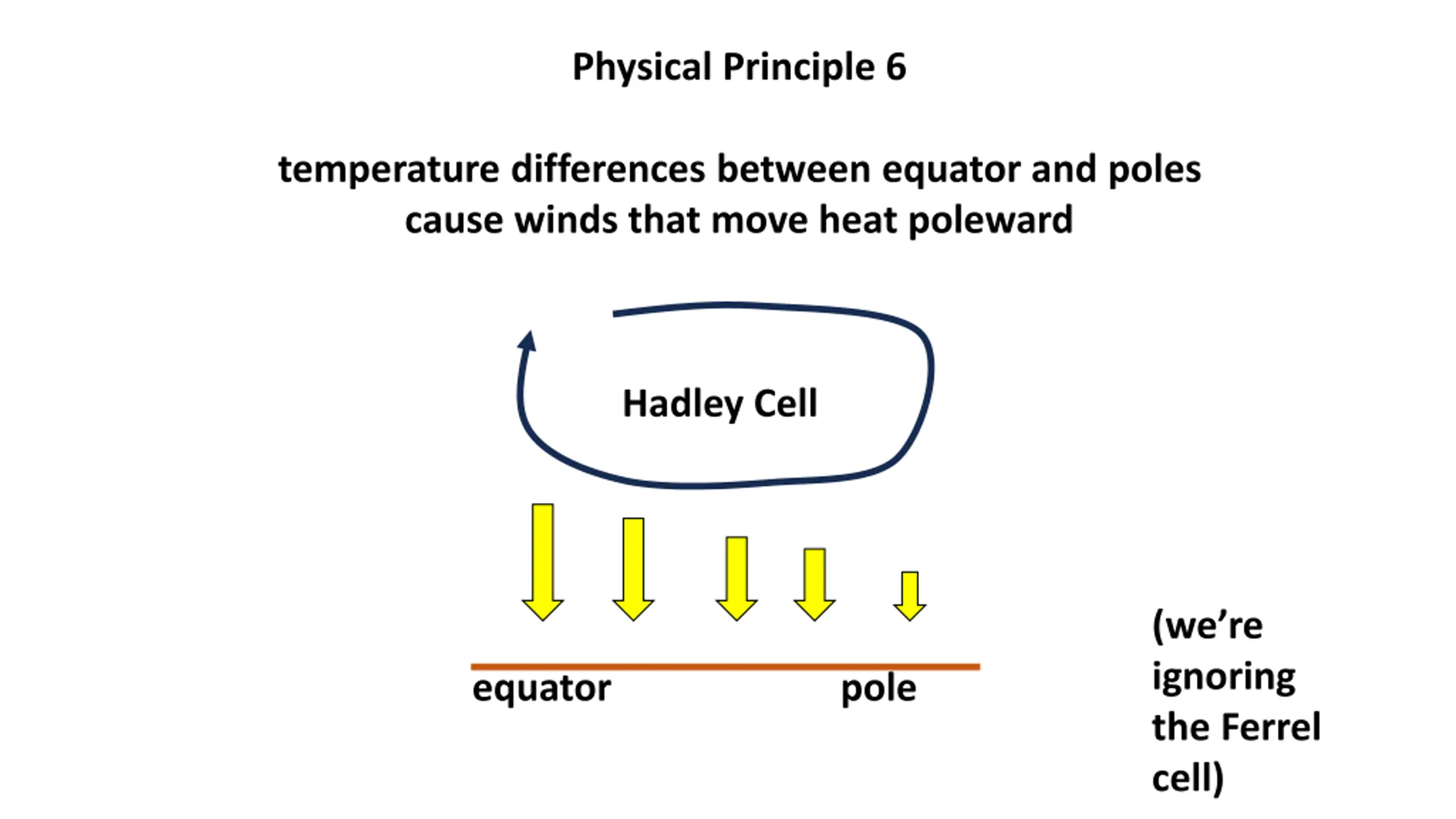Physical Principle 6 temperature differences between equator and poles cause winds that move heat poleward Hadley Cell (we re ignoring the Ferrel cell) equator pole