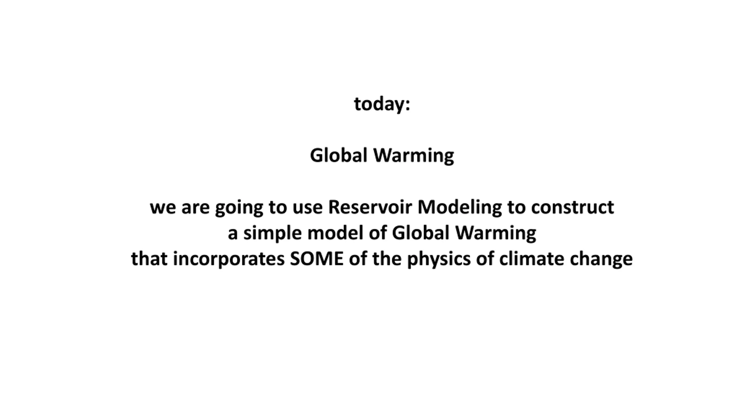 today: Global Warming we are going to use Reservoir Modeling to construct a simple model of Global Warming that incorporates SOME of the physics of climate change