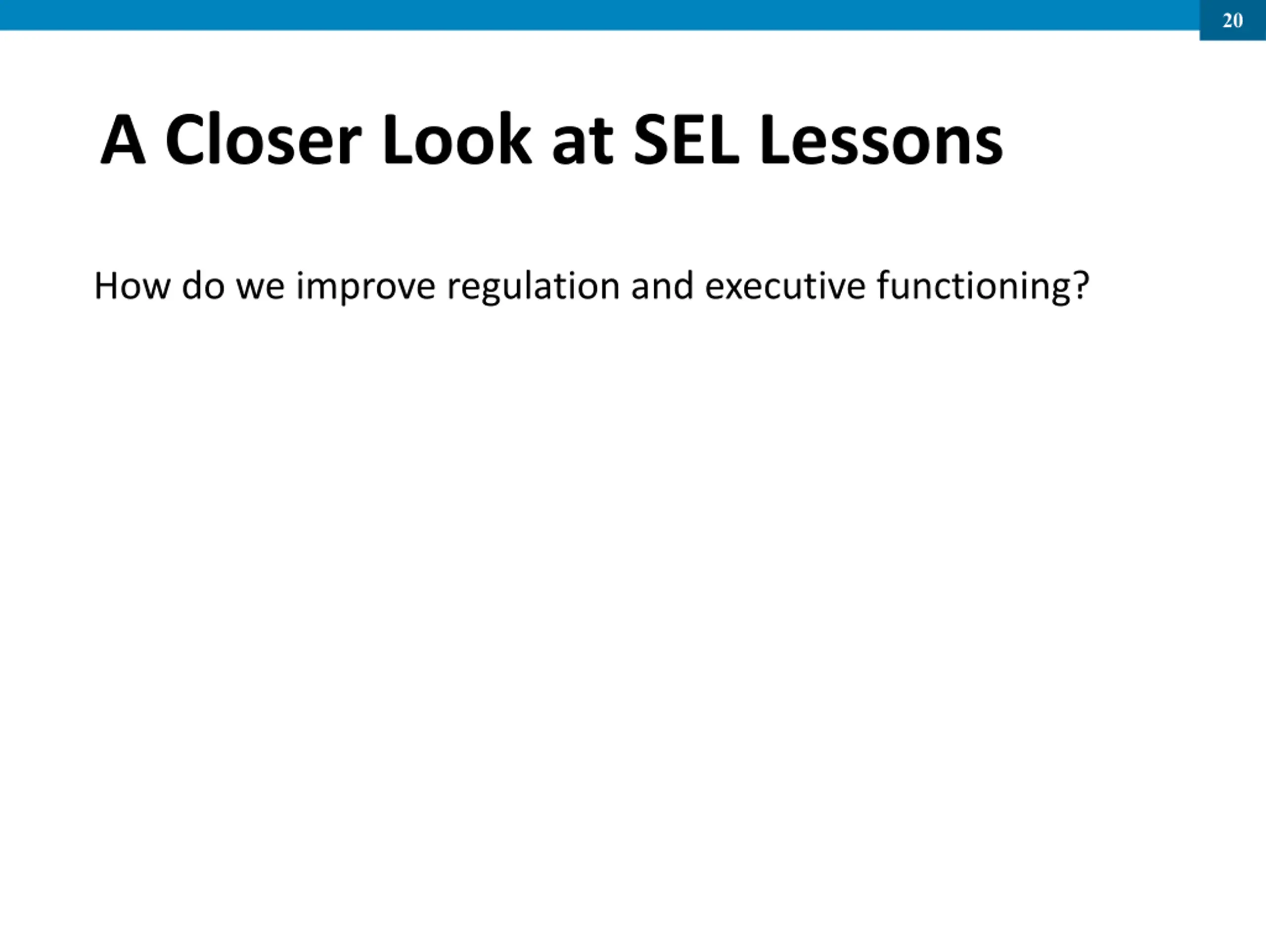 20 A Closer Look at SEL Lessons How do we improve regulation and executive functioning?